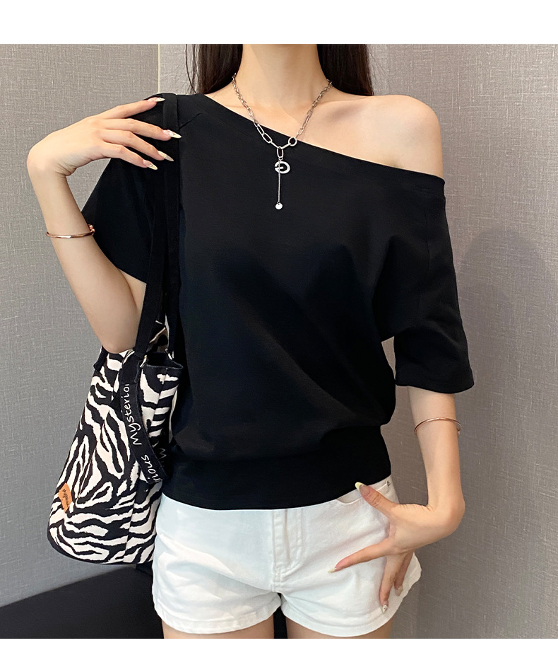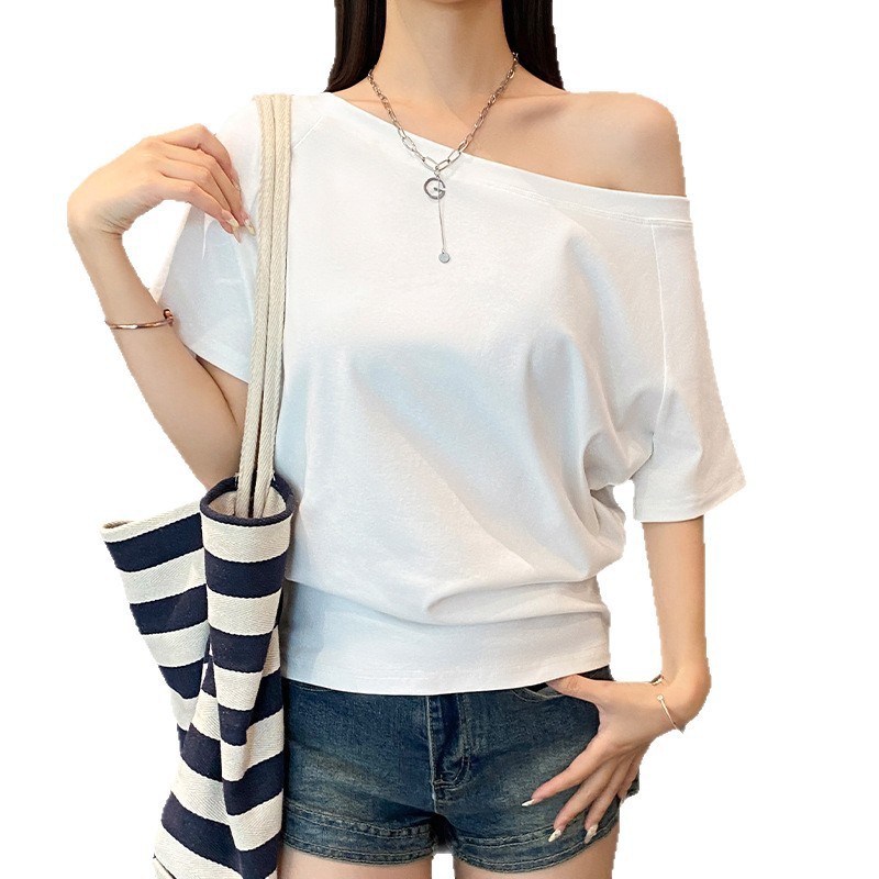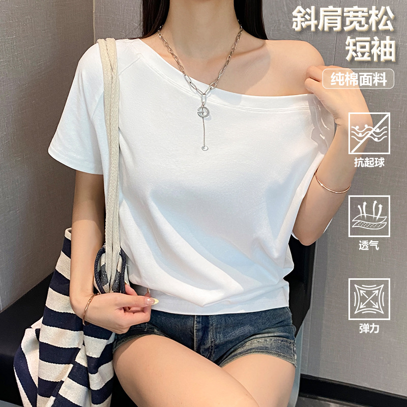 2025 летний новый дизайн рыхлый, эластичные плечи нишевые топы женская футболка с короткими рукавами дикая тонкая
