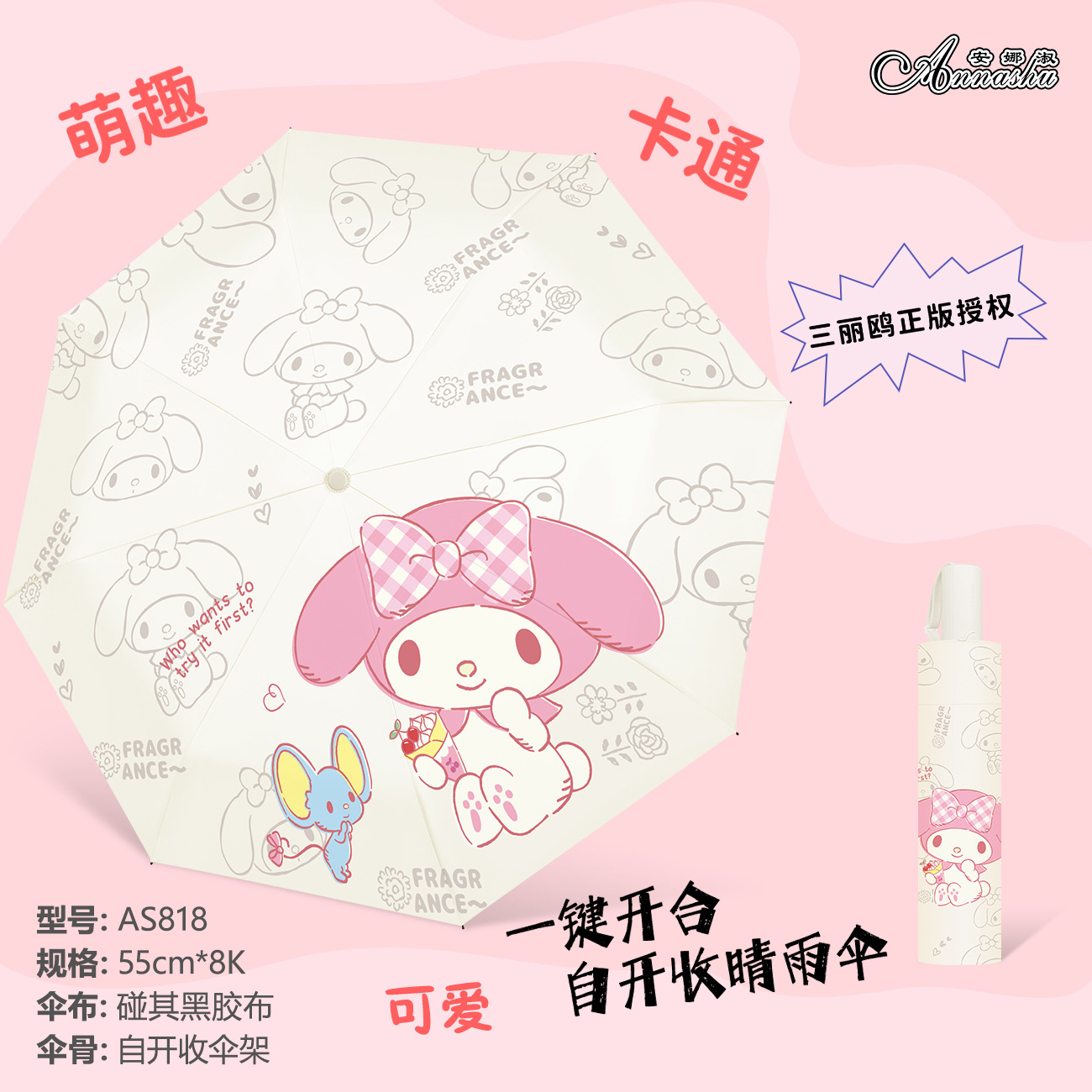 Аутентичный зонт Sanrio, мультяшный зонт от солнца, виниловый зонт от дождя или блеска, защита от солнца, защита от ультрафиолета 70% off Автоматический зонт