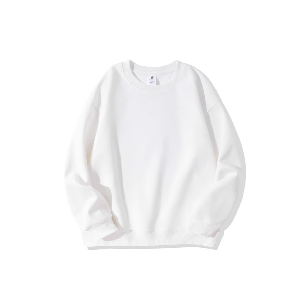 Белая китайская хлопковая флисовая толстовка с круглым вырезом