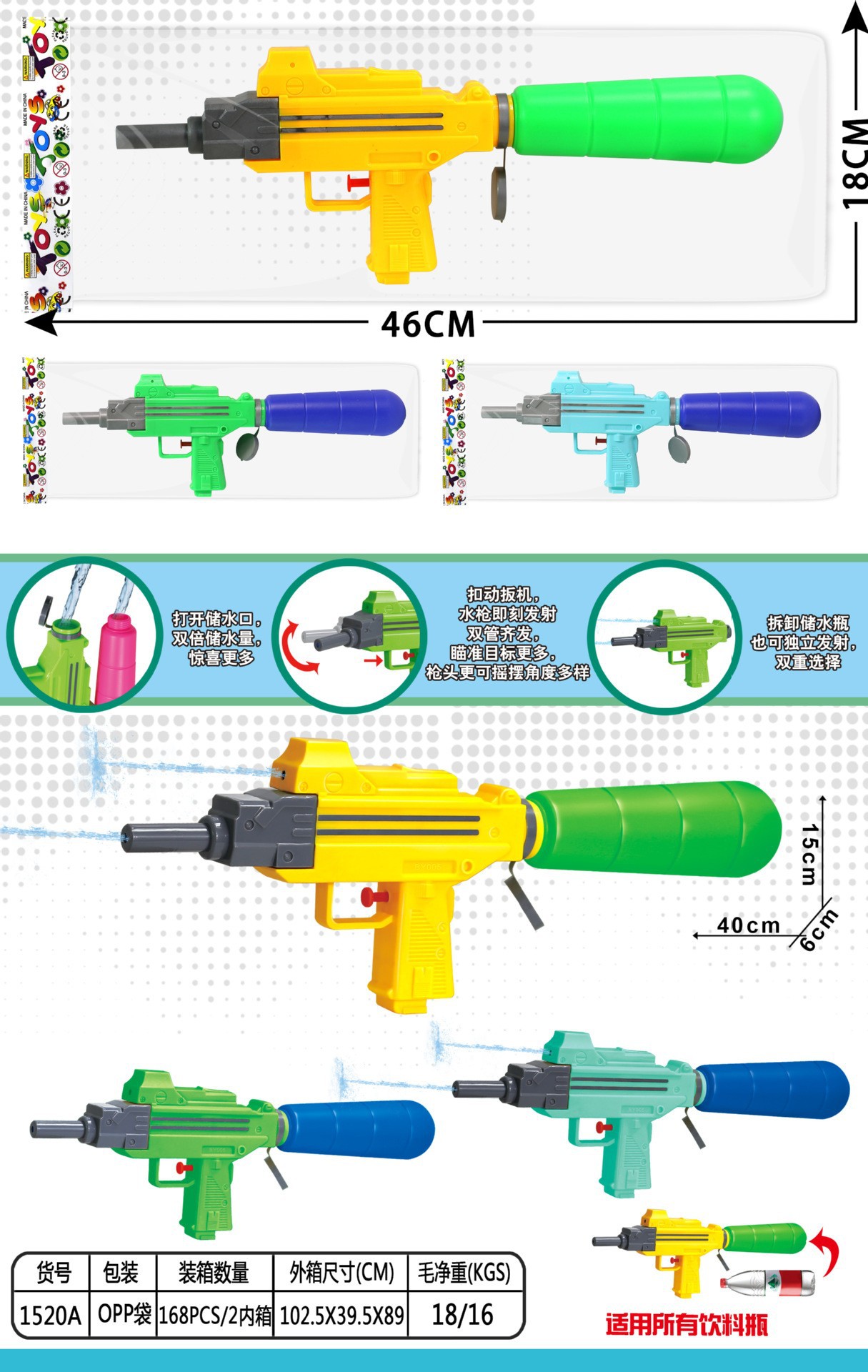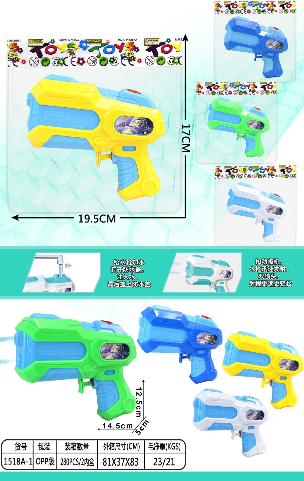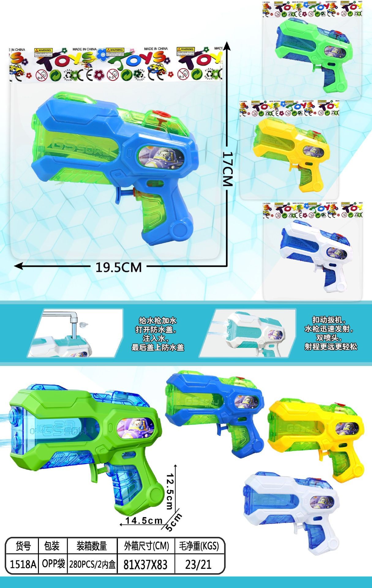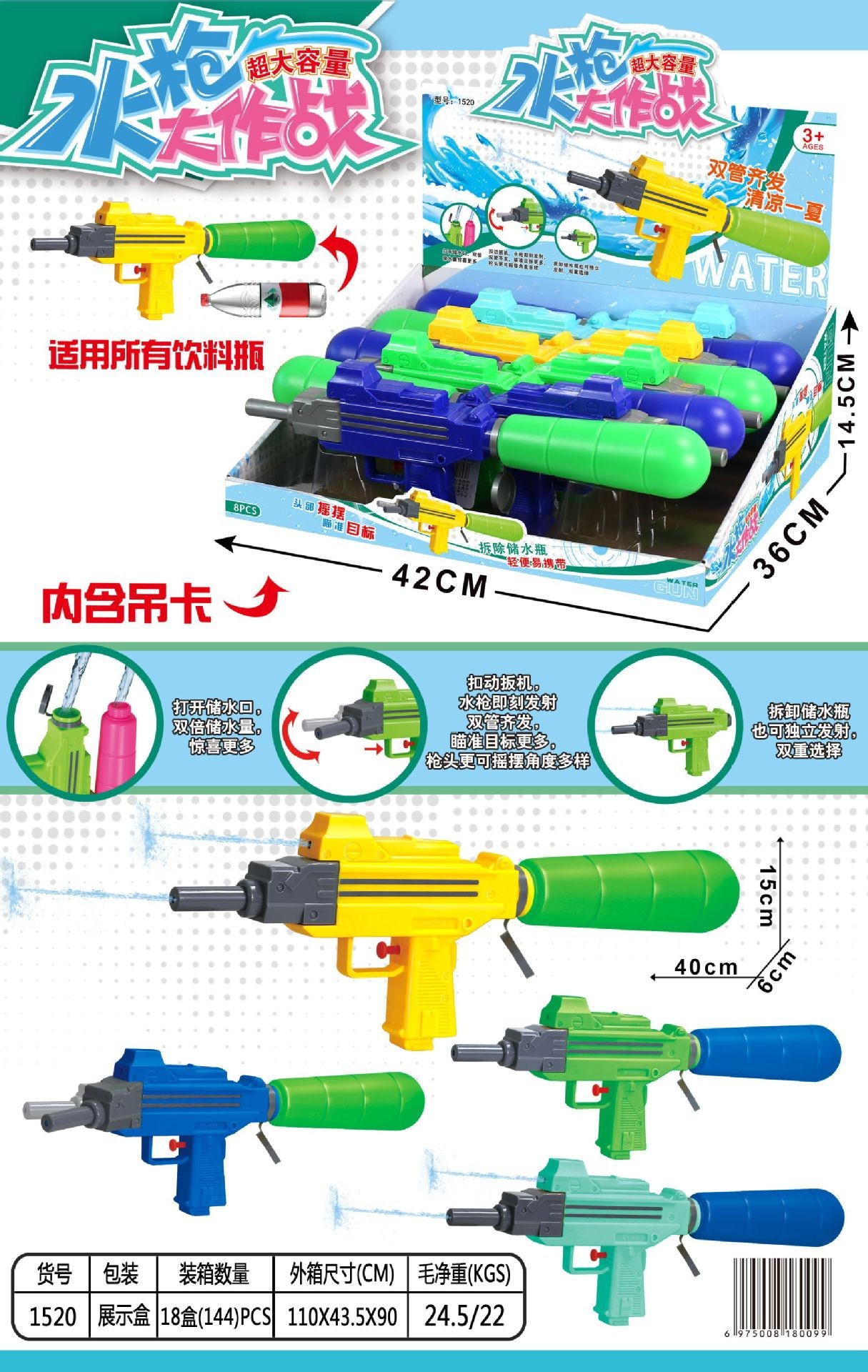Водяной пистолет с двойной насадкой 1527A [упаковка из полипропилена]
