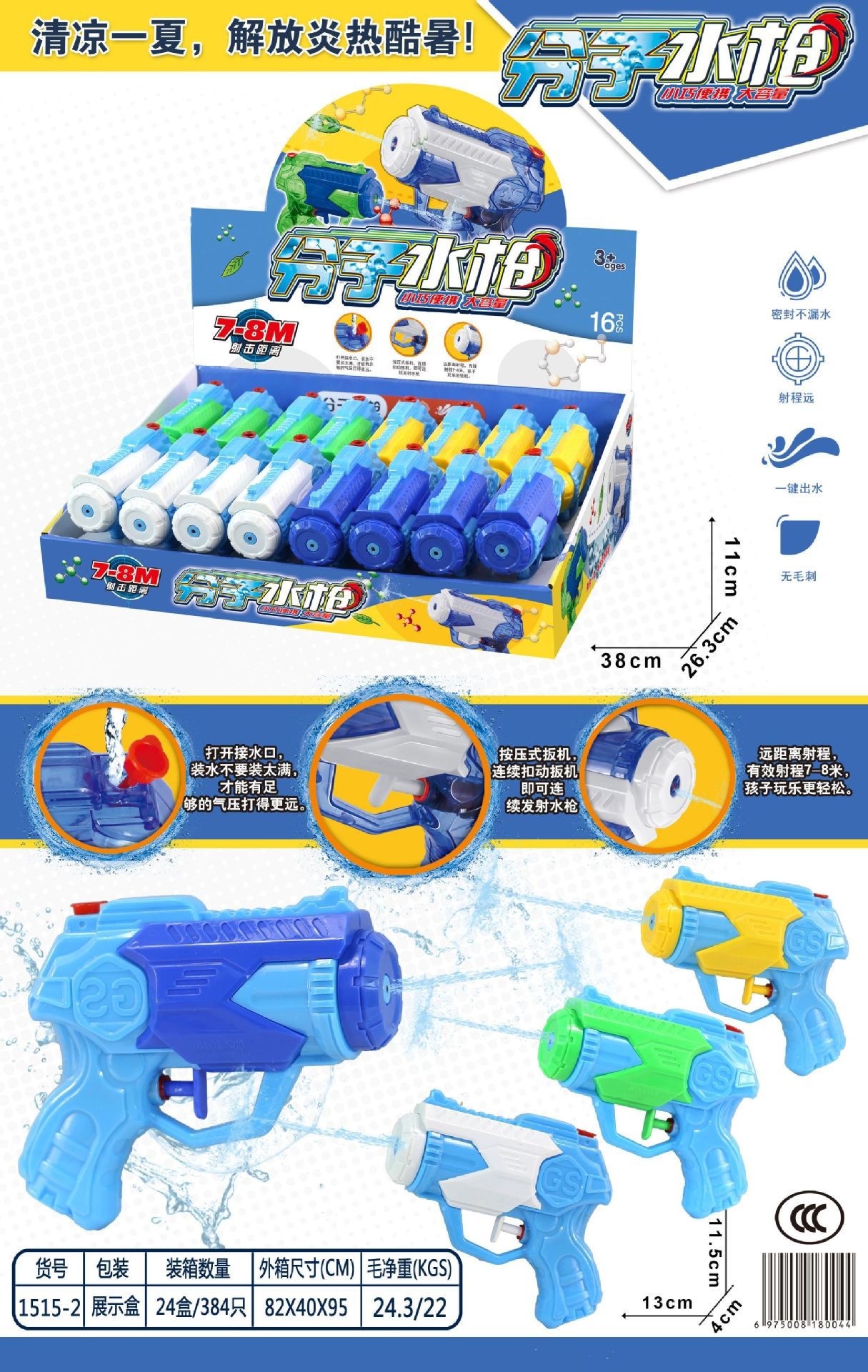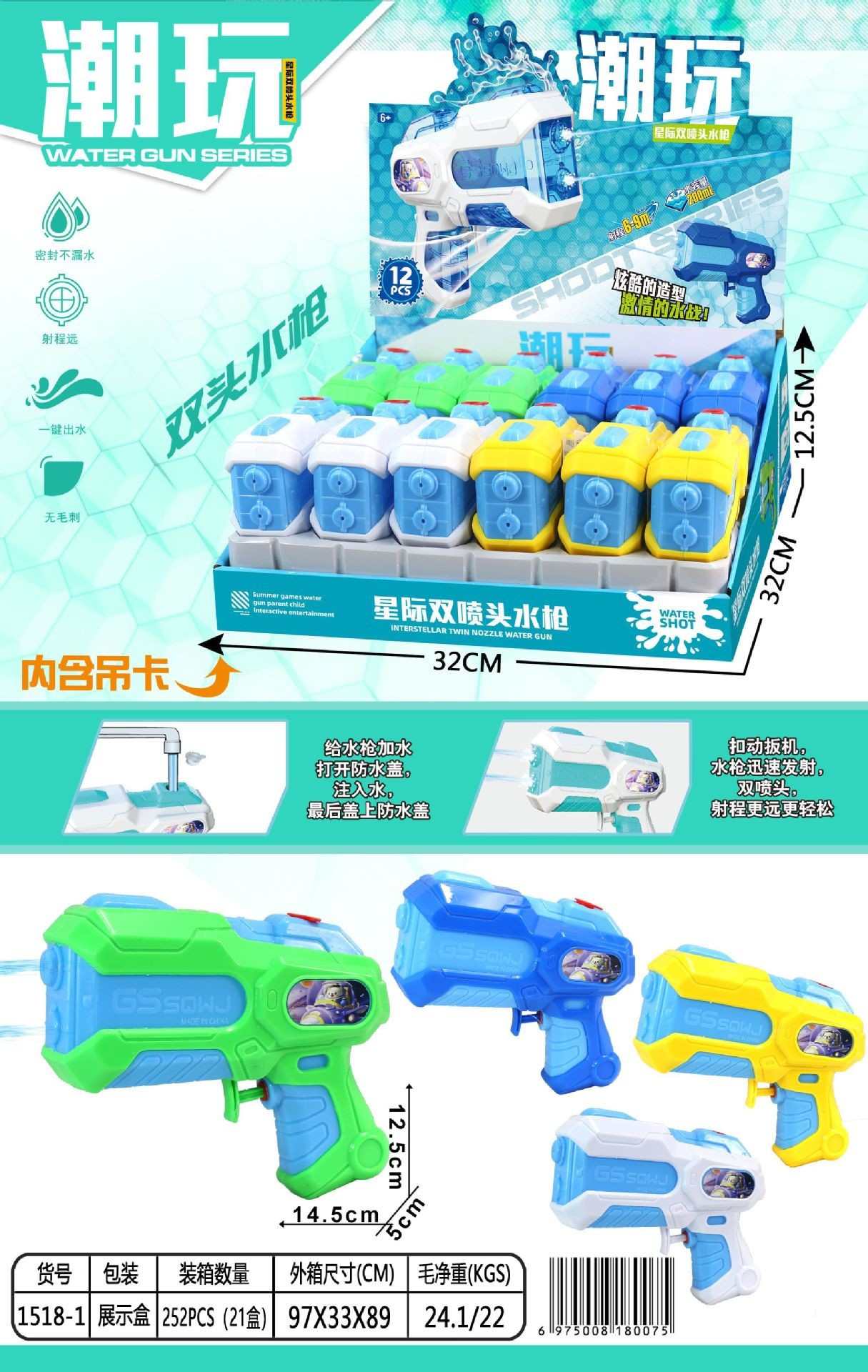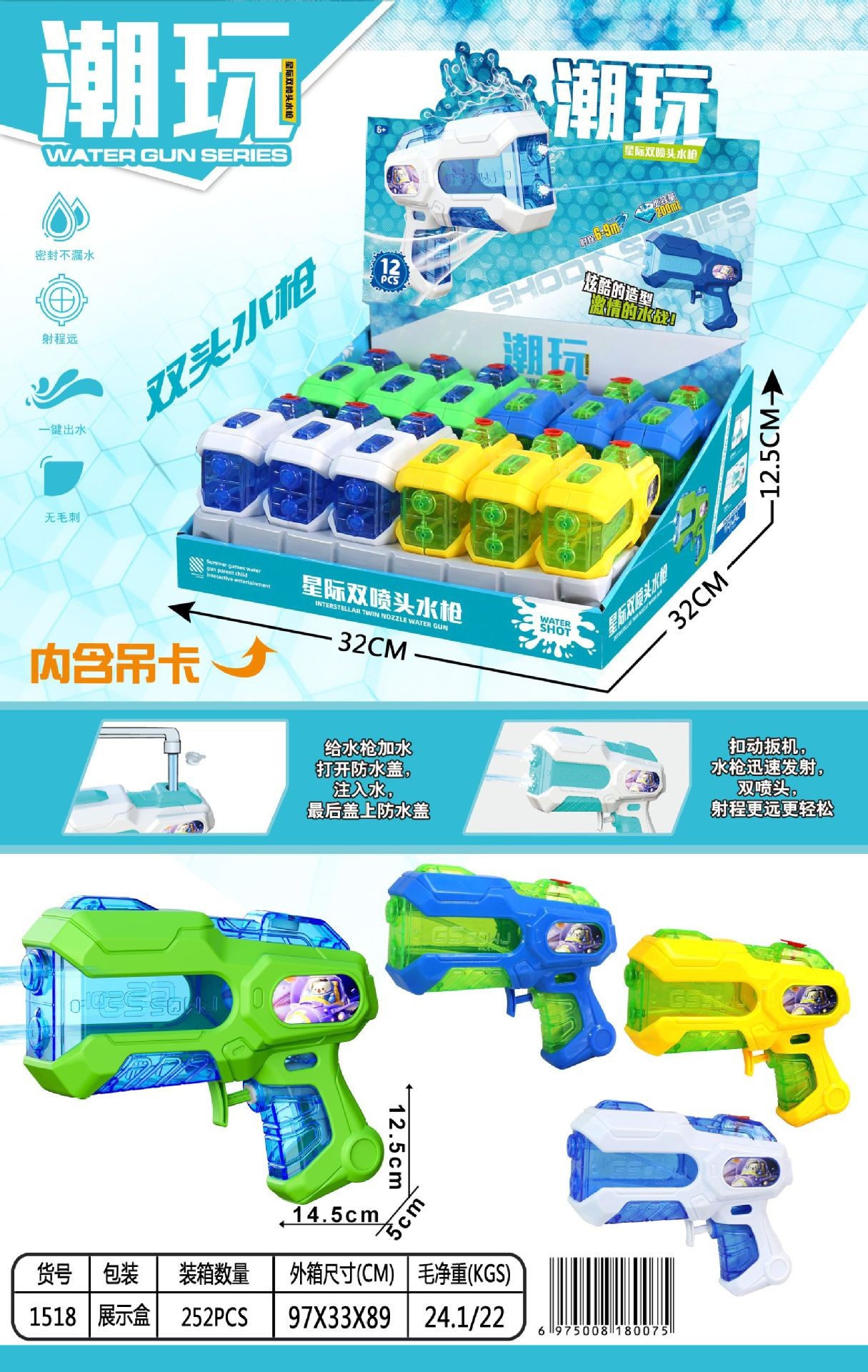 Водяной пистолет с двойным соплом 1527 [упаковка в демонстрационной коробке/16 шт.]