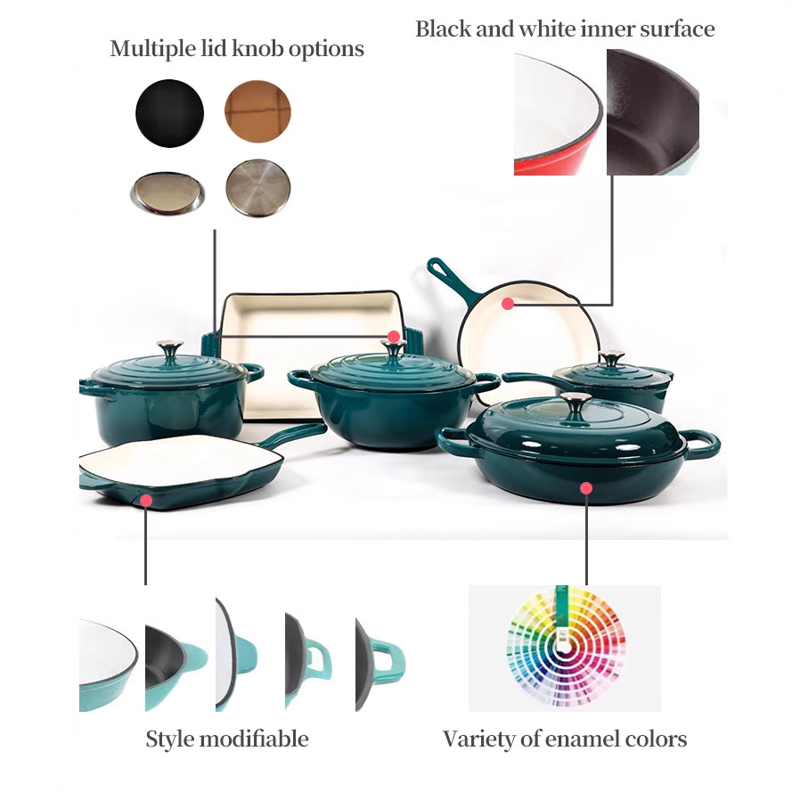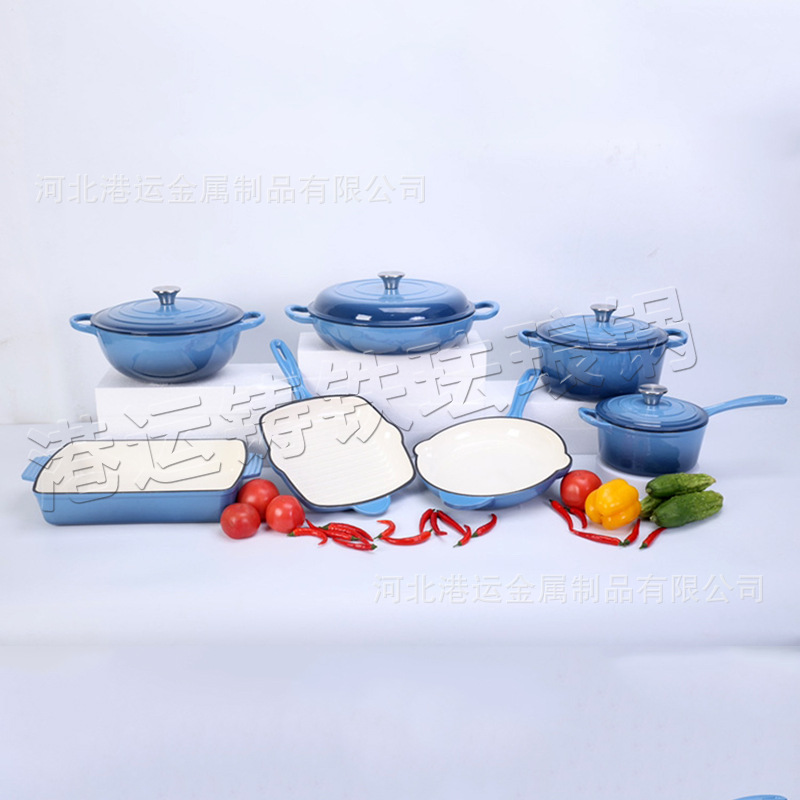- Набор из семи предметов Набор посуды из чугуна и эмали из 7 предметов