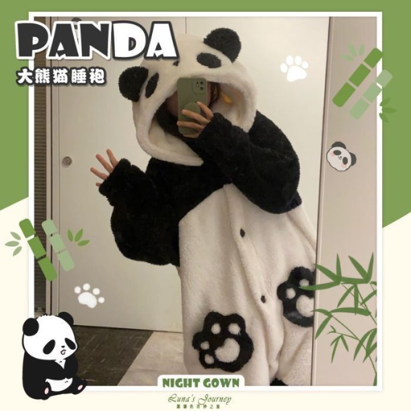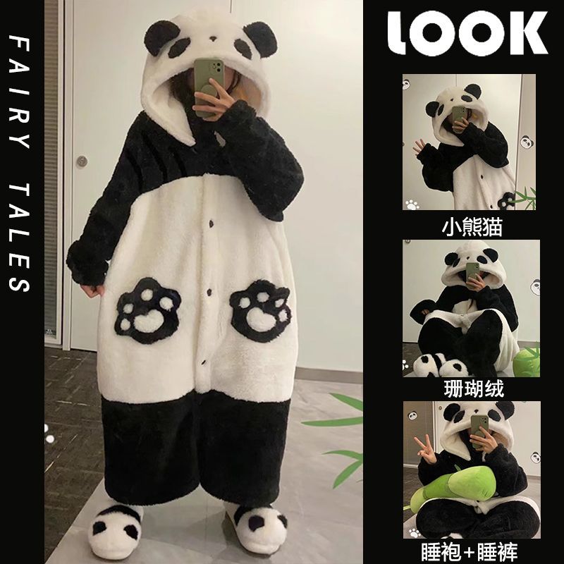 Национальная сокровищница панда коралловый бархатный пижама женский зимний бархат утолщает теплая фланель длинная высокая стоимость зимняя ночная одежда