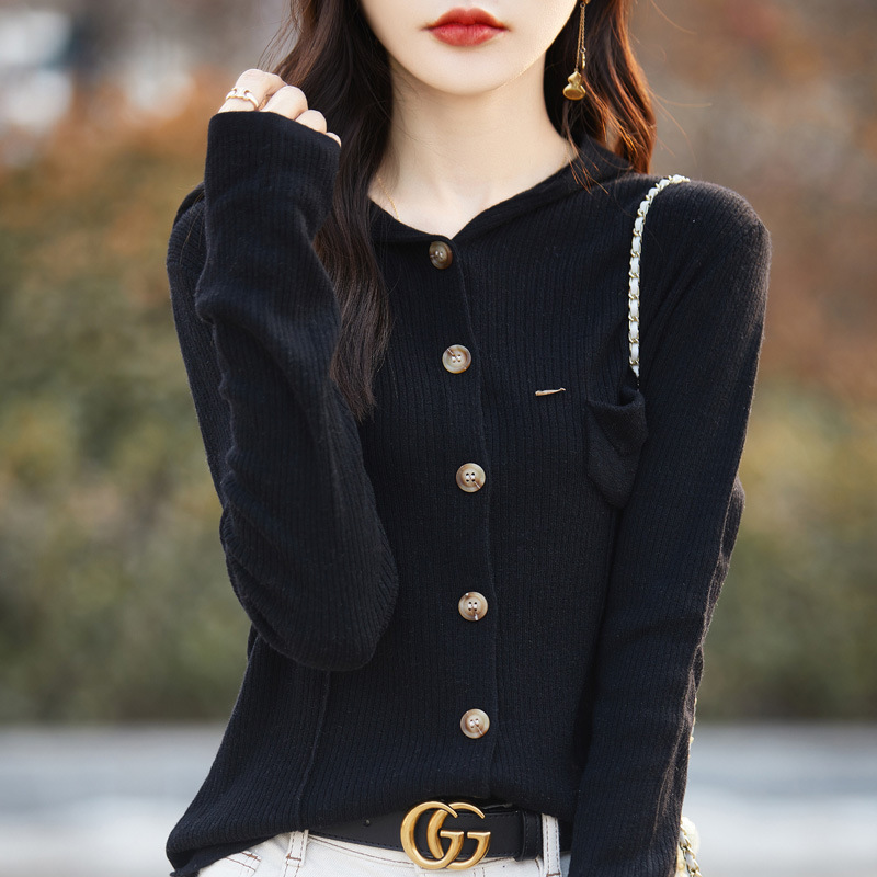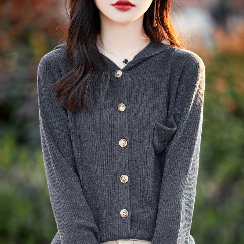 Главная страница > 24. Весенне-осенний камвольный шерстяной кардиган, женская толстовка с капюшоном, однотонная, с карманами и длинными рукавами, свободные и самые последние модели для матчей. Трикотажные топы. Топ.
