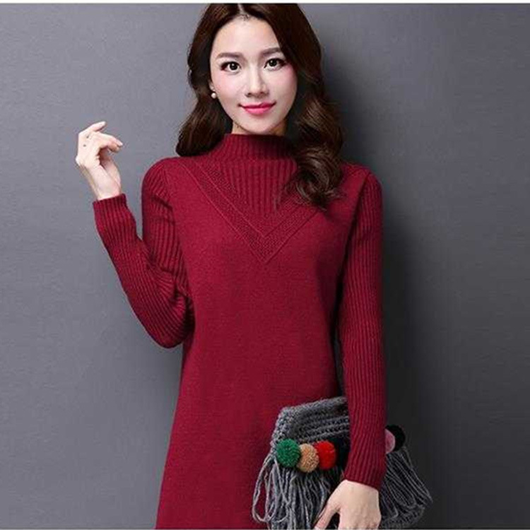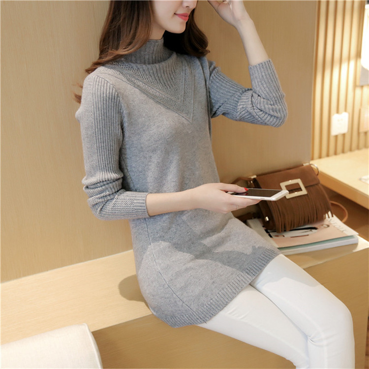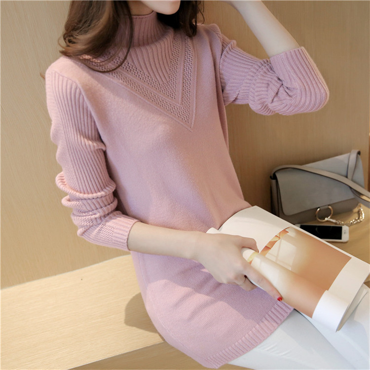 Новая осенне-зимняя трикотажная одежда, Женская водолазка средней длины с высоким воротником, простая свободная внутренняя кофта в Корейском стиле, Базовая рубашка для женщин