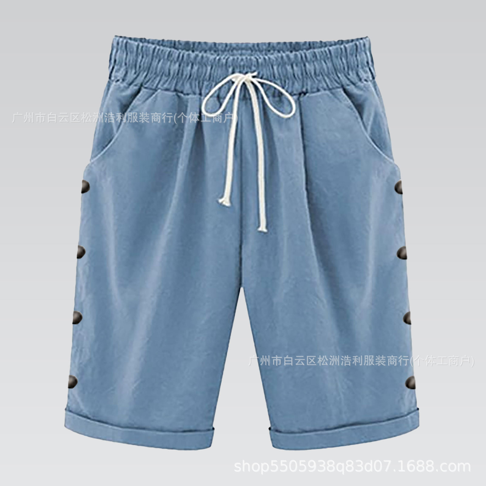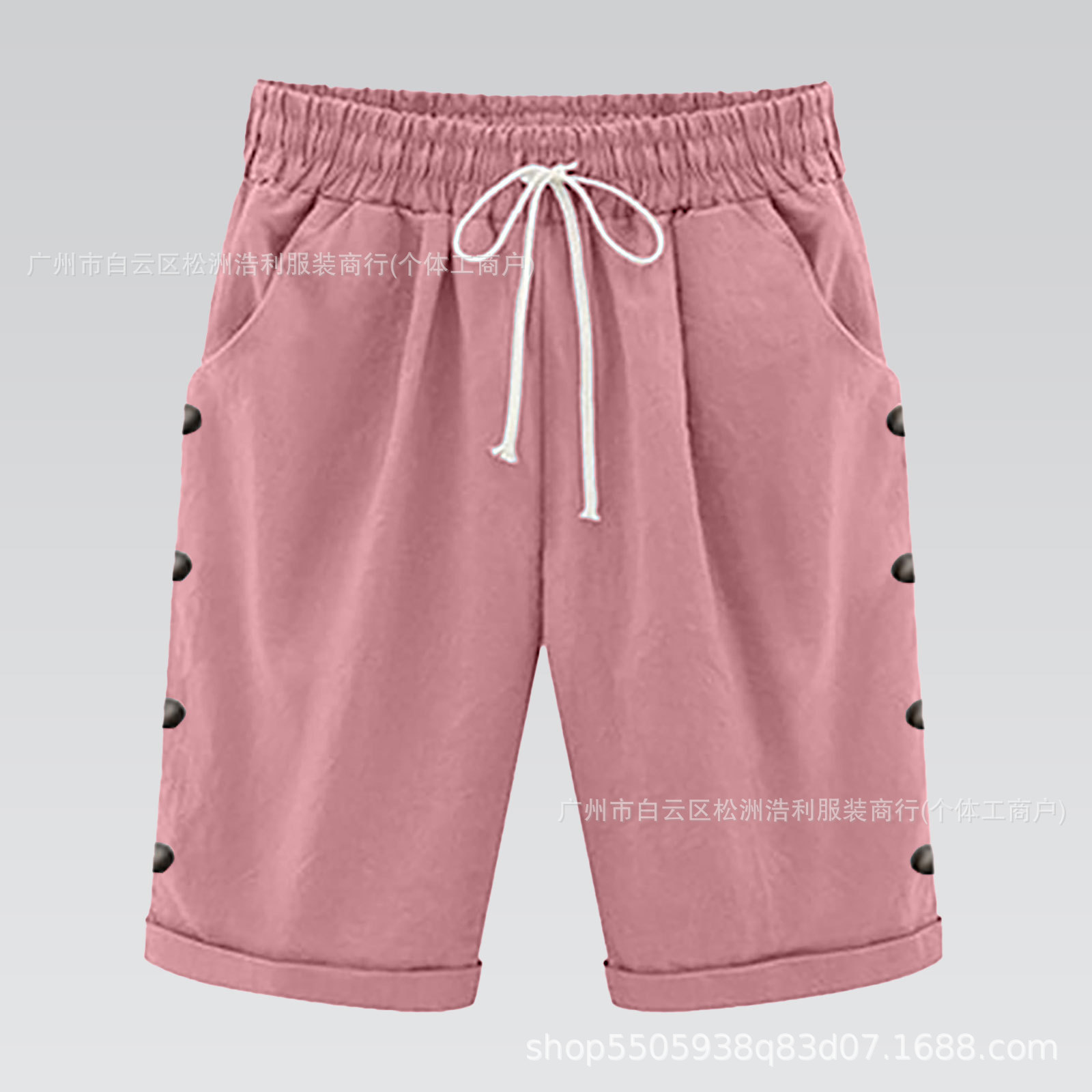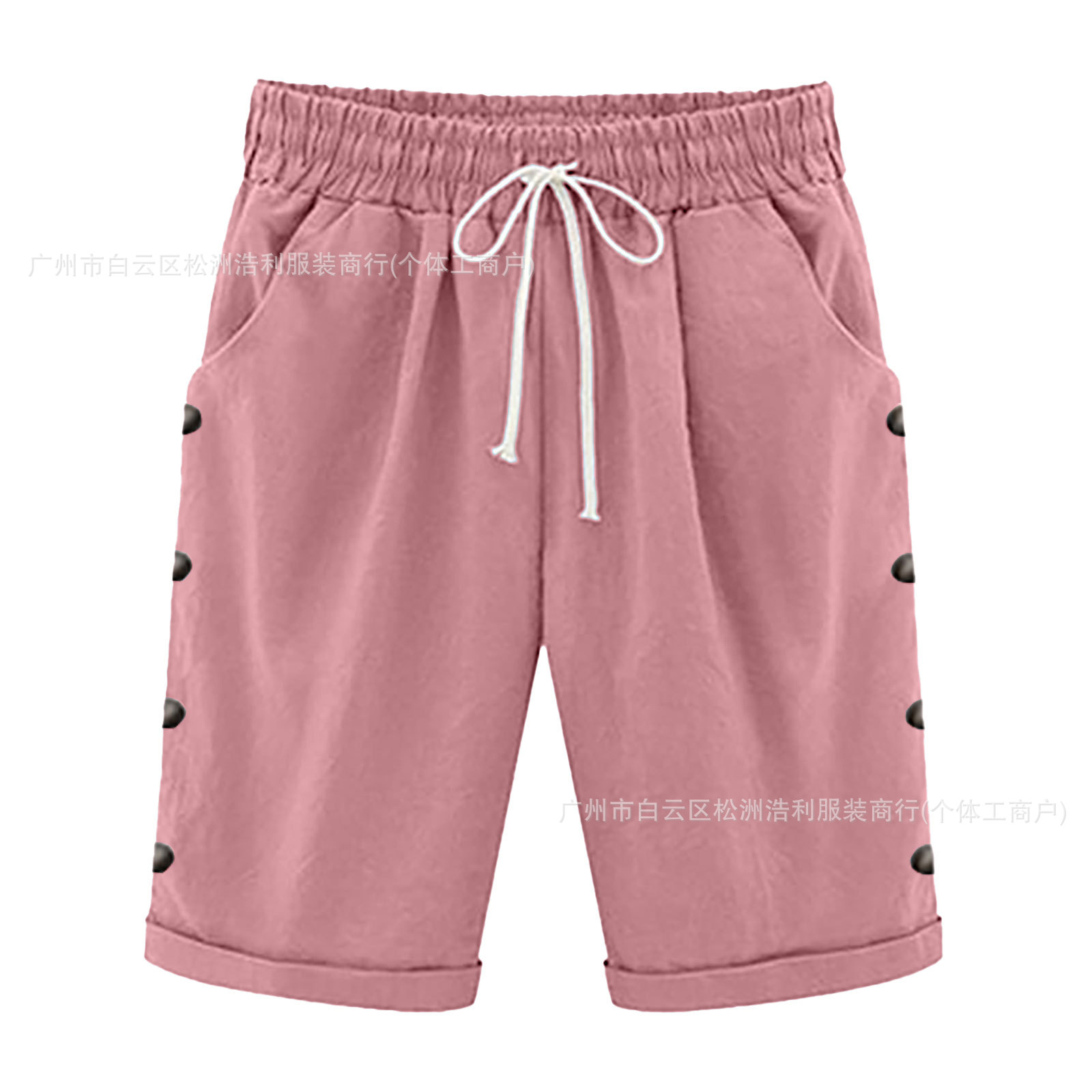 Главная страница > Новые европейские и американские летние однотонные спортивные повседневные шорты для женщин, тонкие свободные шорты средней длины на пуговицах для уличной одежды.
