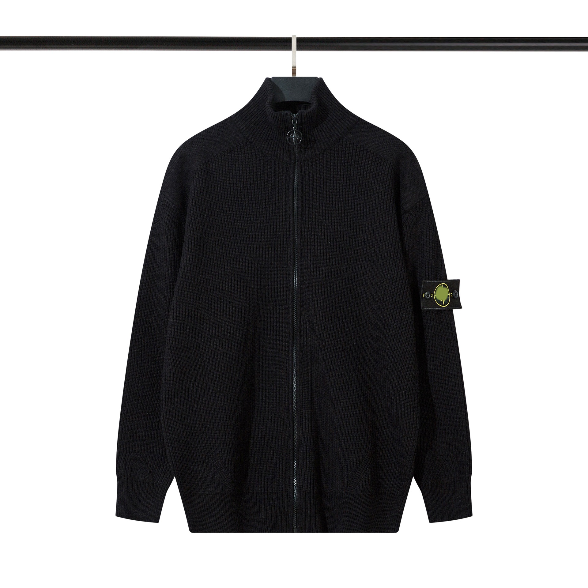 Главная страница > Трансграничная европейская и американская молния STONE с камнями, открытая нагрудная часть, воротник-стойка, значок, функциональный вязаный свитер, осенне-зимний мужской и женский ius