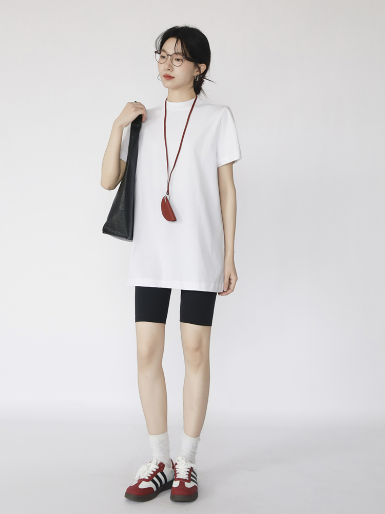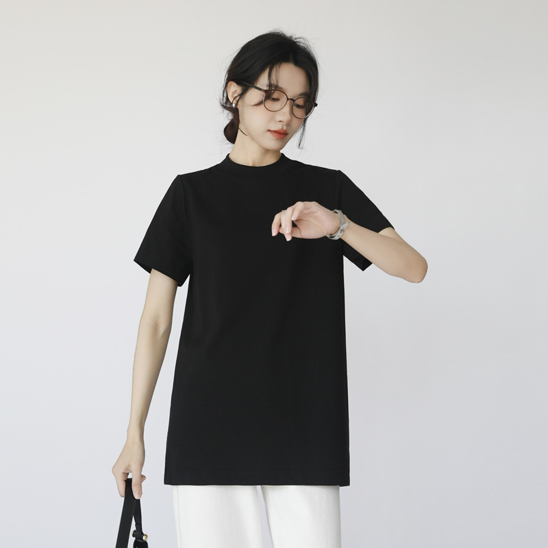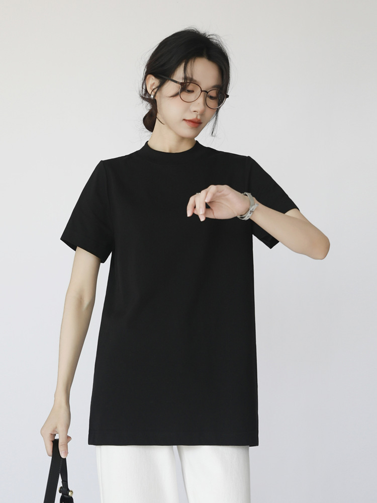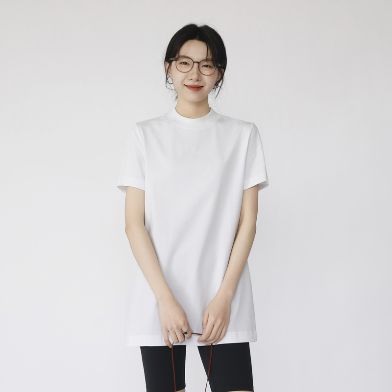 Главная страница > Длинная футболка, покрывающий задницу с половинным вырезом, женский короткий рукав, повседневный простой свободный, тонкая и тонкая нижняя рубашка