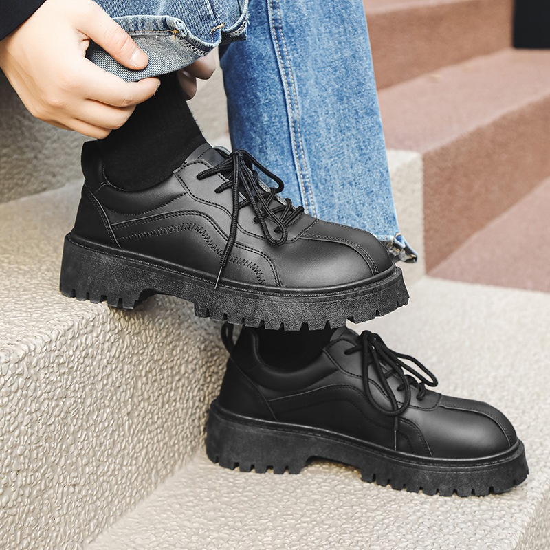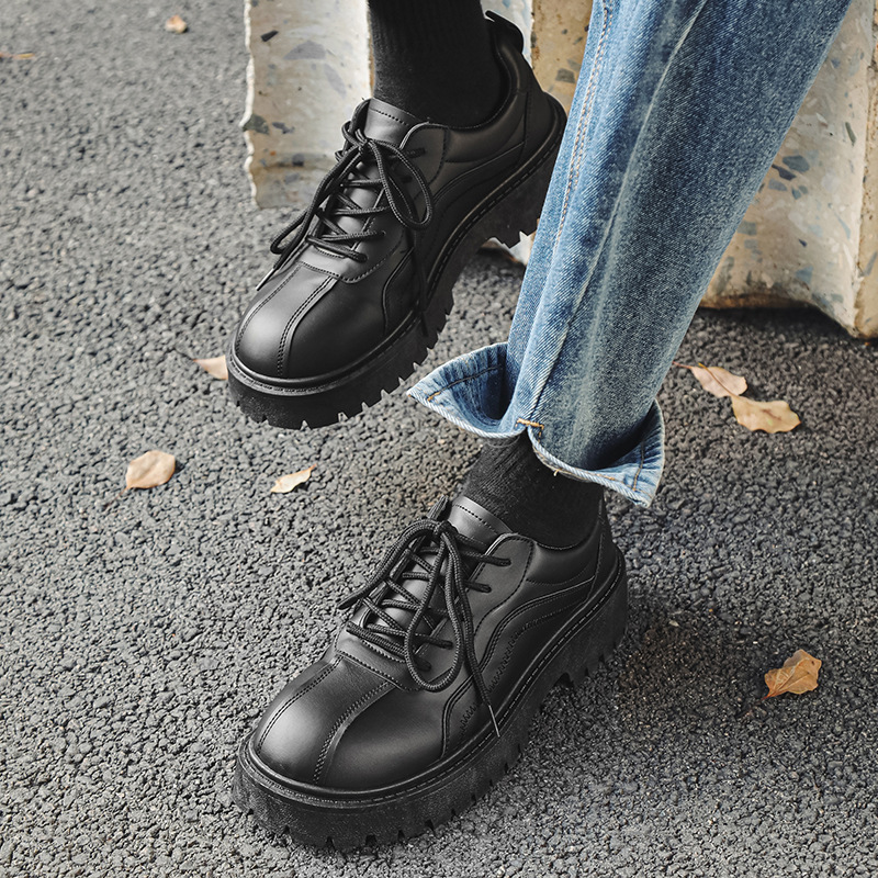 Главная страница > Мужская обувь Осень Британская повседневная бизнес-обувь с большой головой кожаные туфли с низкой и толстой подошвы ретро черно-белый цвет
