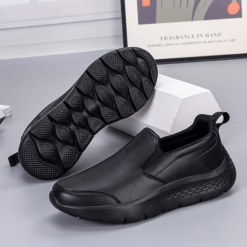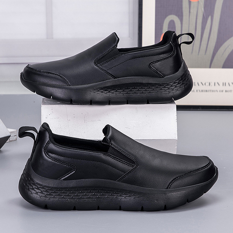 Главная страница > 2025 Весна Новые Кожаные Туфли Мужские Чисто Черные Деловые Повседневные Туфли Без Шнуровки Мягкая Подошва Туфли для Папы Одинаковый Стиль для Мужчин и Женщин