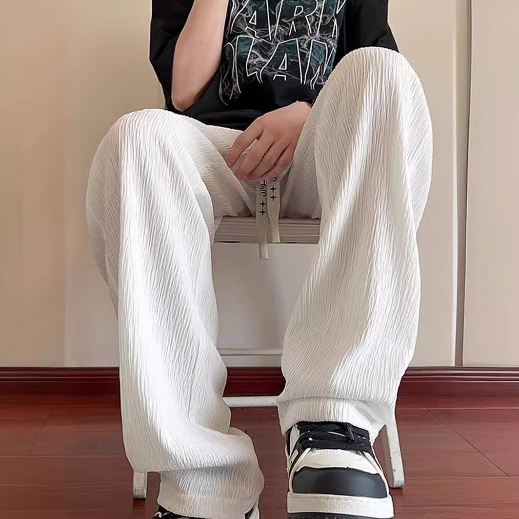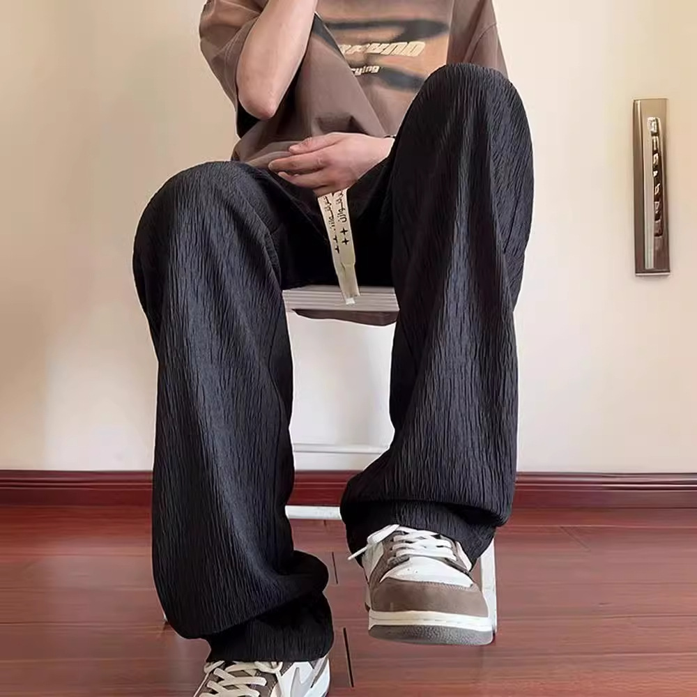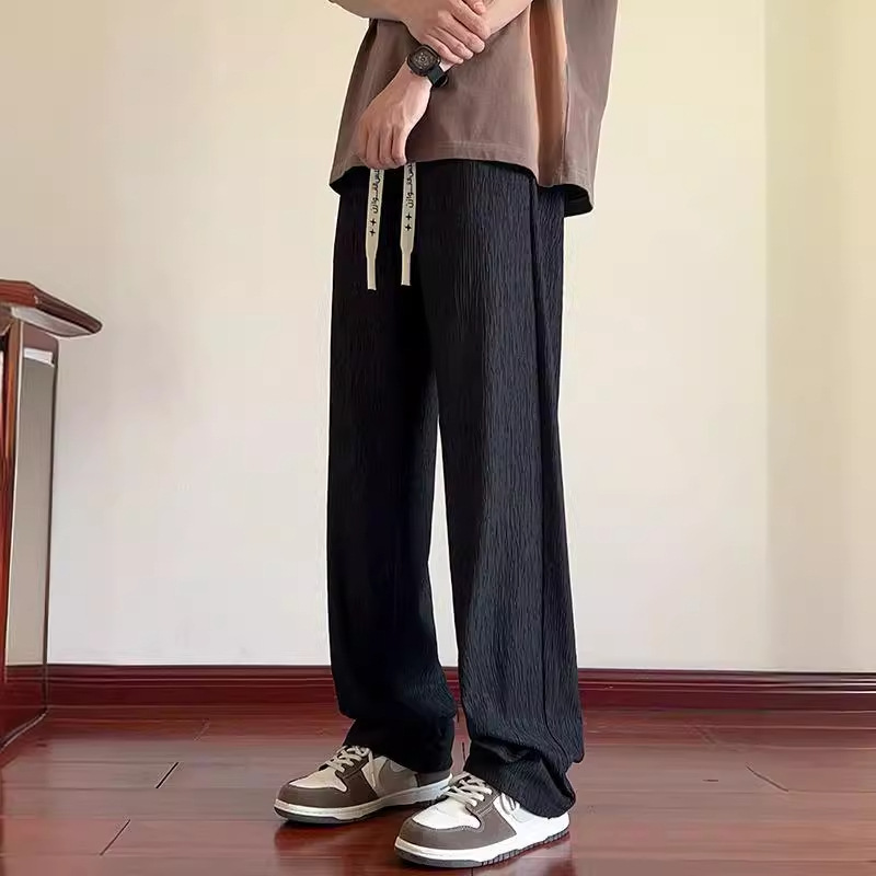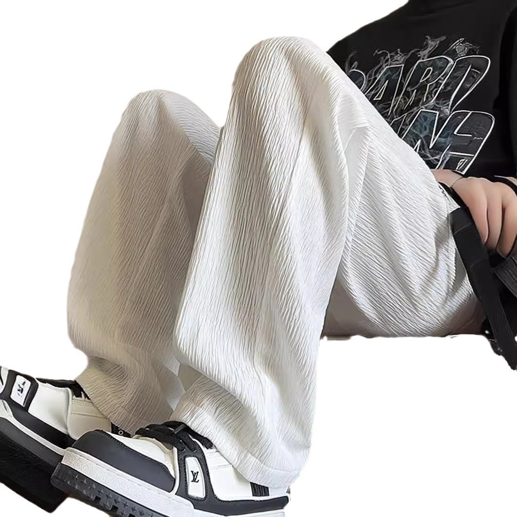 Главная страница > Мужские летние модные свободные тонкие брюки большого размера длиной до пола, прямые брюки из ледяного шелка с драпированной текстурой