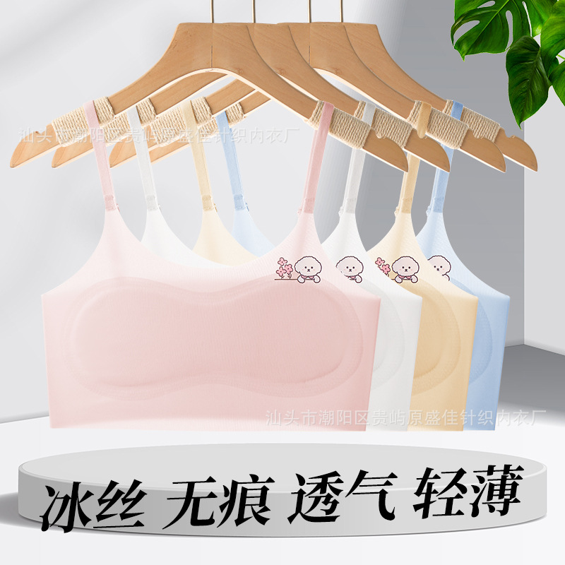 Главная страница > Развивающее нижнее белье для девочек начальной школы, жилет для средней школы, бесшовное нижнее белье из ледяного шелка для девочек, регулируемые бретели, летний тонкий стиль