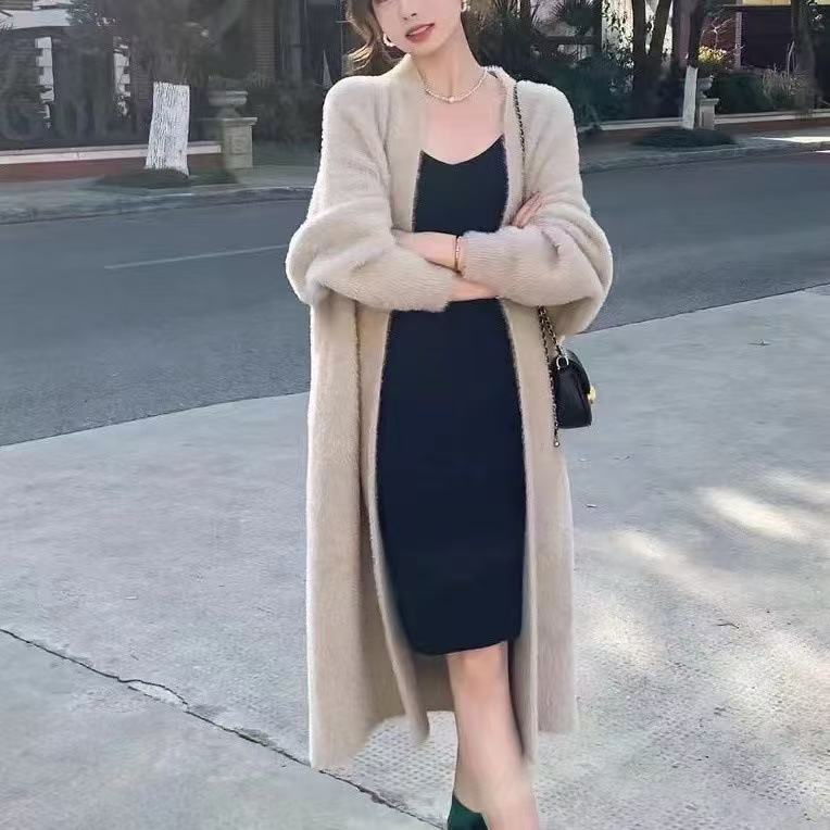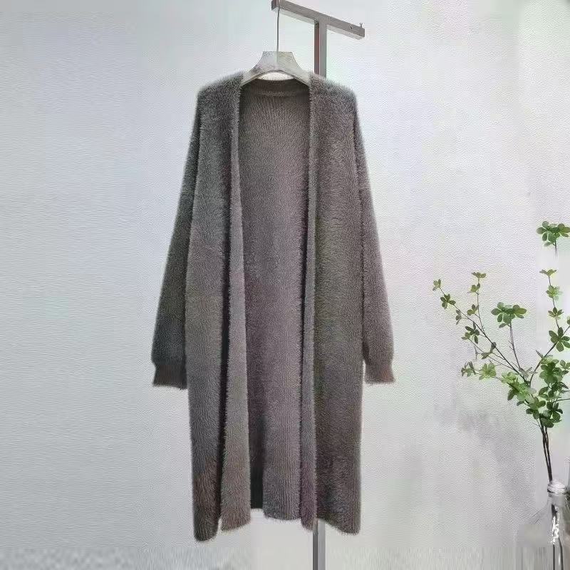 Главная страница > Трансграничный вязаный кардиган свитер женский осень-зима новый свободный большой размер тонкий ленивый ветер имитация норкового бархата длинное пальто