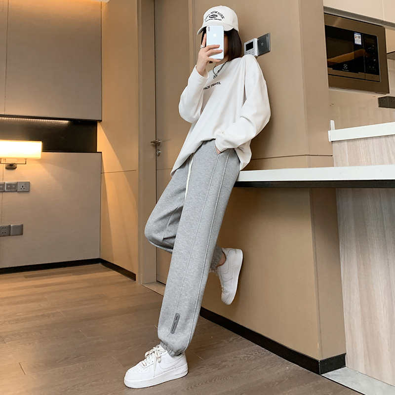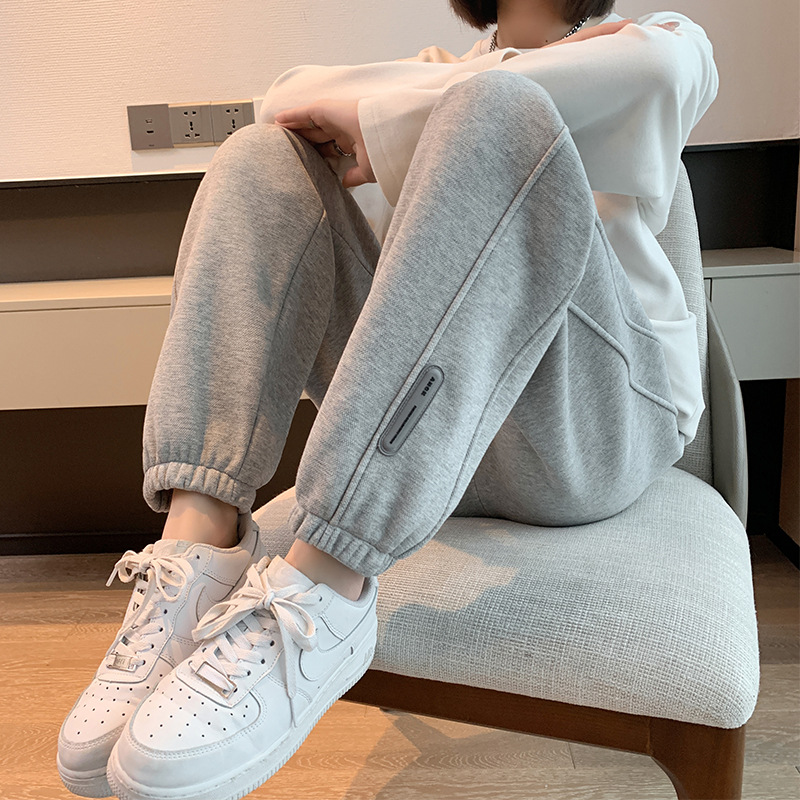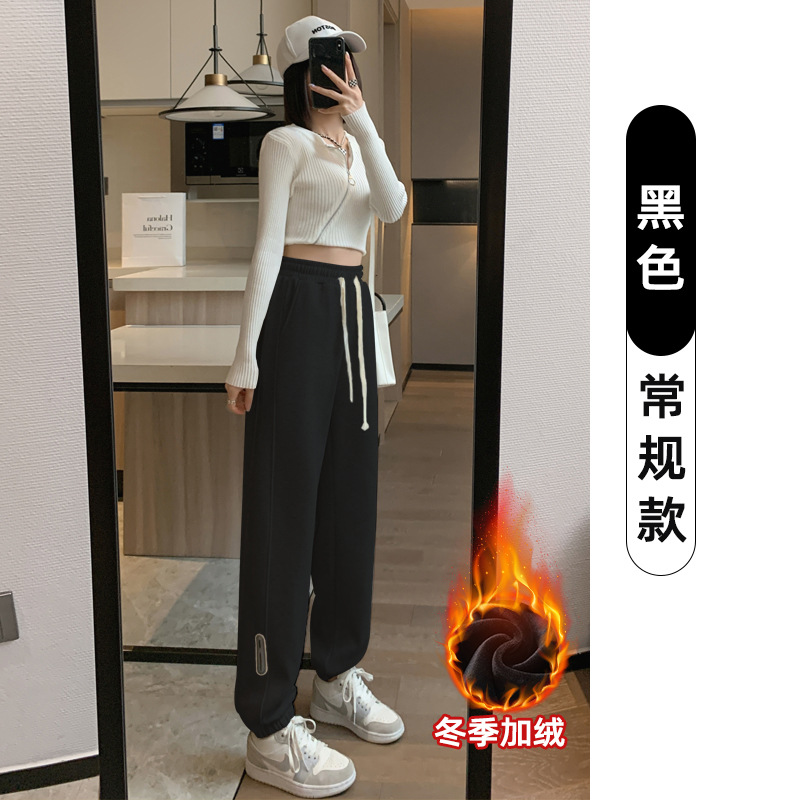 Главная страница > Спортивные штаны женские утолщенные спортивные штаны на флисовой подкладке женские 2023 осенне-зимние повседневные брюки с высокой талией, маленькие свободные брюки с завязками на щиколотке