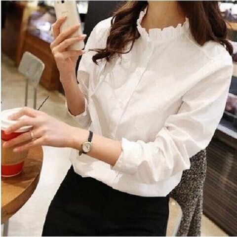 Главная страница > Весна и осень новая белая блузка с кружевным воротником с ушным воротником маленькая свежая Женская Студенческая рубашка с длинным рукавом Базовая рубашка