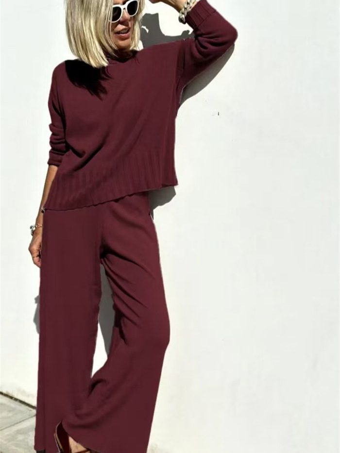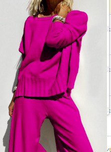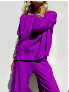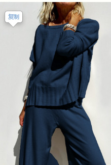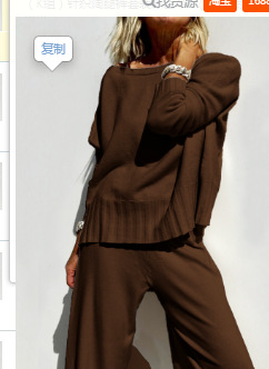 Главная страница > 25 весенний новый ленивый стиль трикотажные широкие брюки костюм свитер пуловер женские повседневные брюки темперамент набор из двух частей