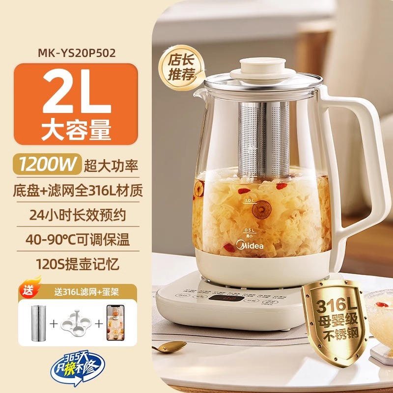 Главная страница > Чайник для воды Midea Health, 2 л, большая емкость, 316 л, электрический чайник с регулируемой температурой, интеллектуальный чайник для воды с постоянной температурой MK-YS20P502