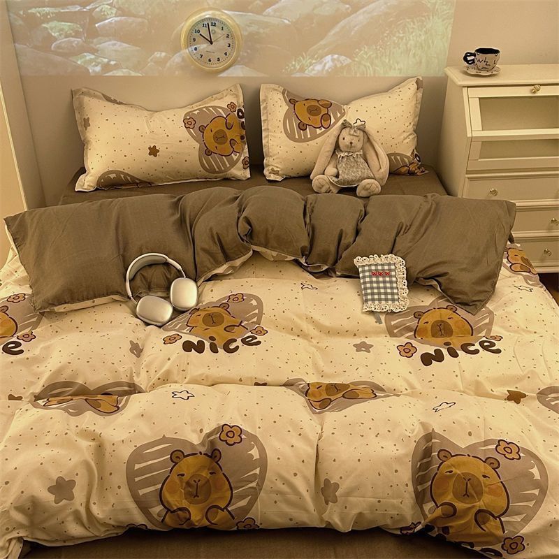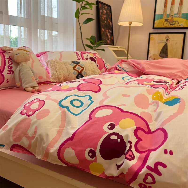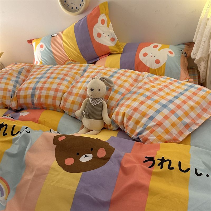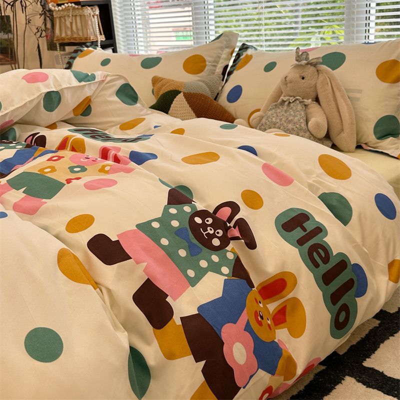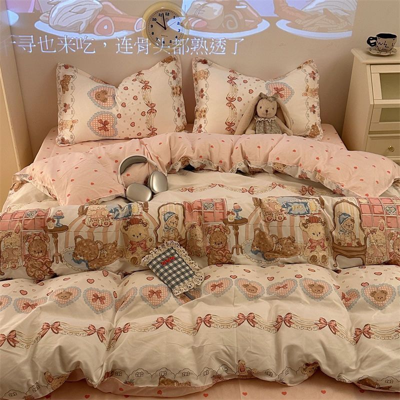 Главная страница > Ins Letters Bear Bed простой набор из четырех моющихся хлопковых простыней и одеяла, мультяшное студенческое общежитие из трех частей