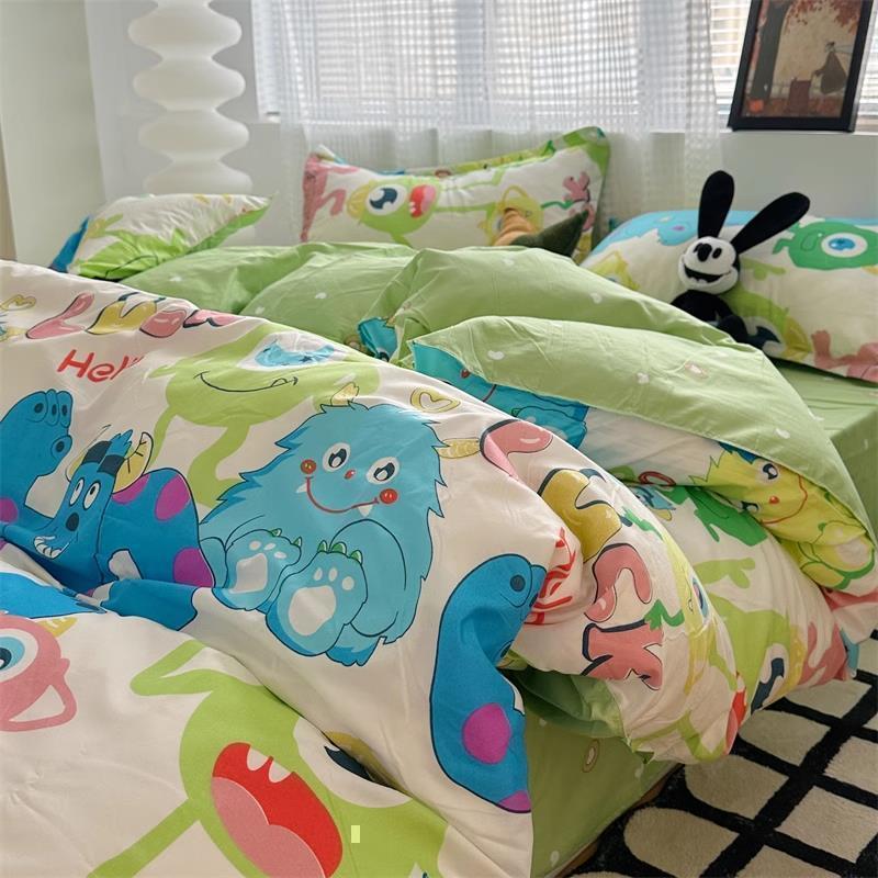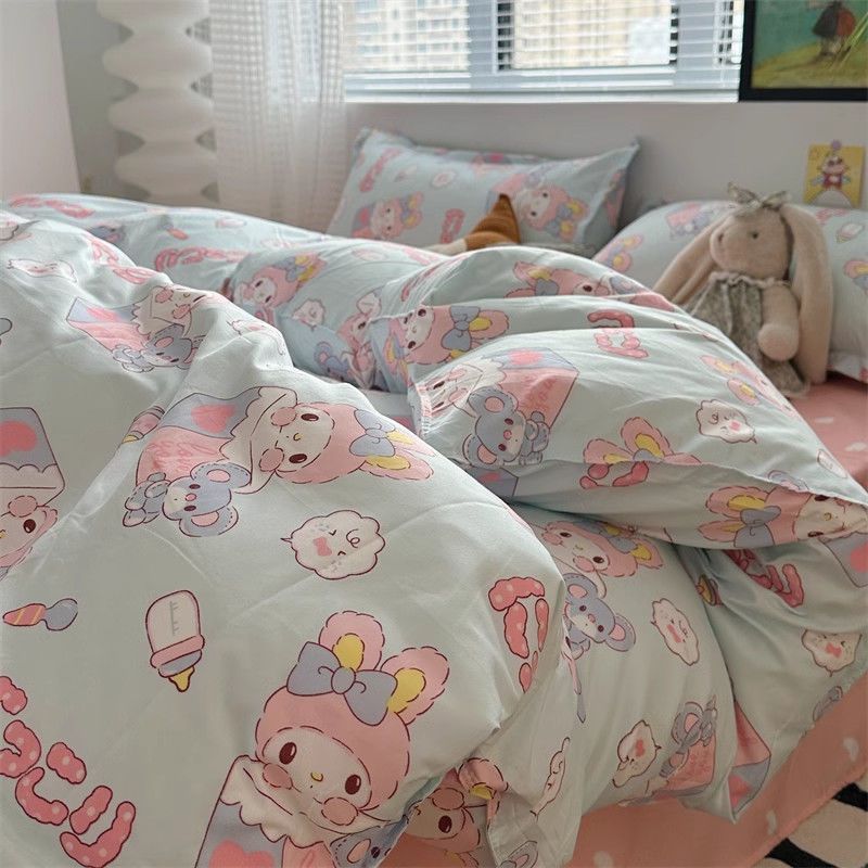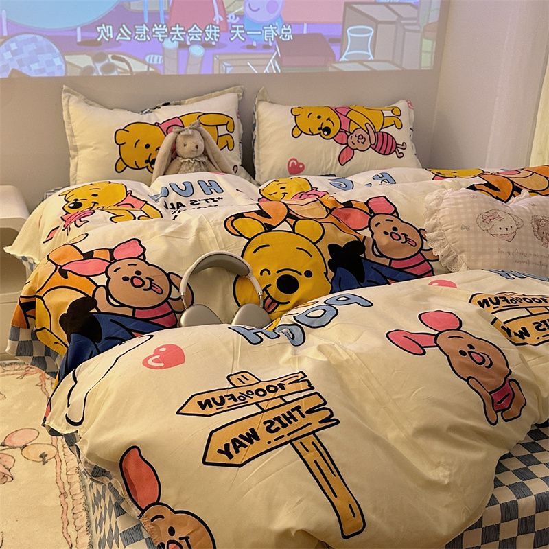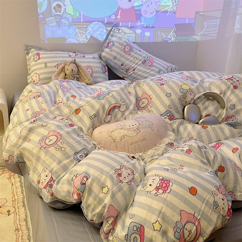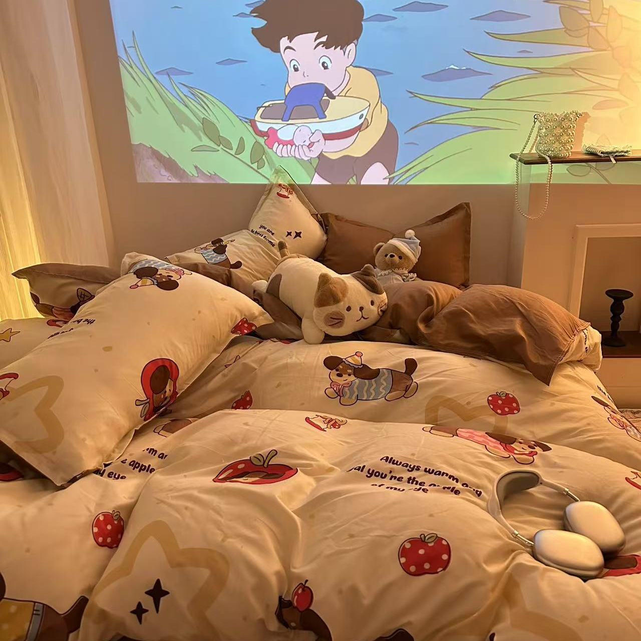 Главная страница > Ins Letters Bear Bed простой набор из четырех моющихся хлопковых простыней и одеяла, мультяшное студенческое общежитие из трех частей