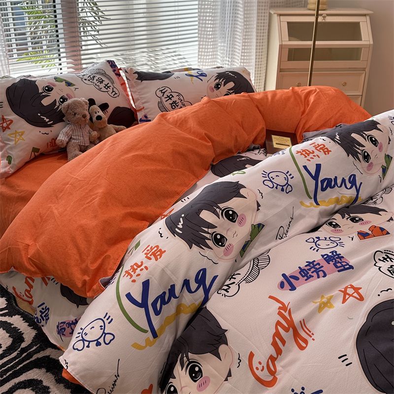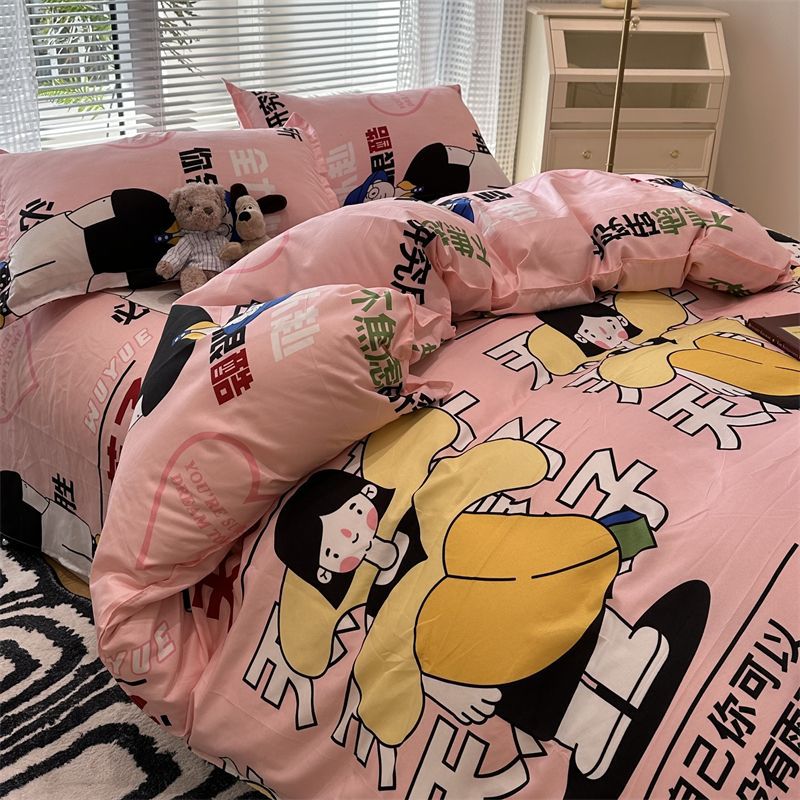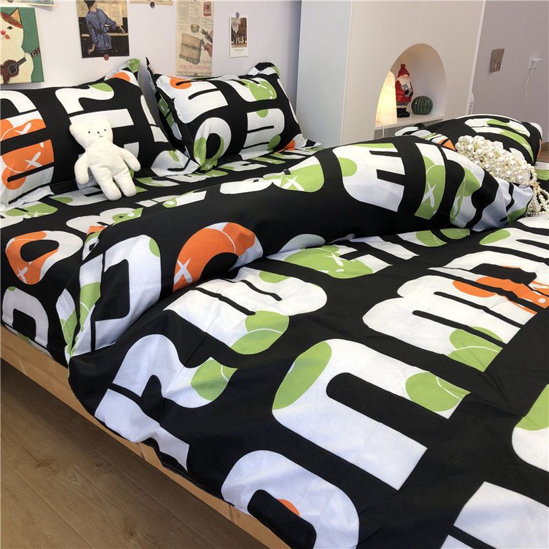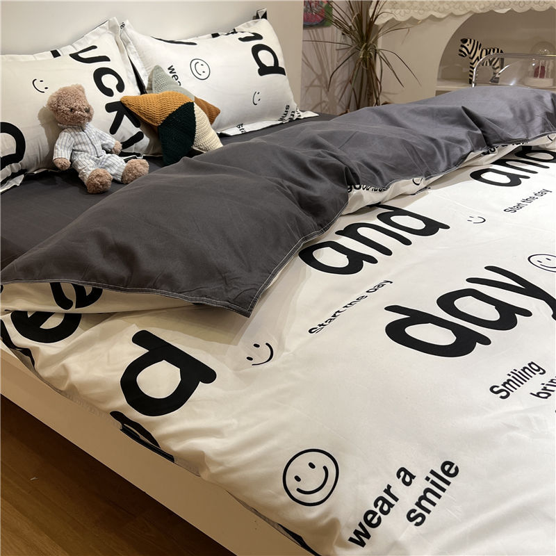 Ins Letters Bear Bed простой набор из четырех моющихся хлопковых простыней и одеяла, мультяшное студенческое общежитие из трех частей