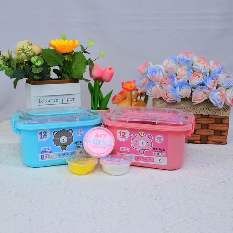 Сверхлегкая глина 12 цветов в коробке (с формой для инструментов)
