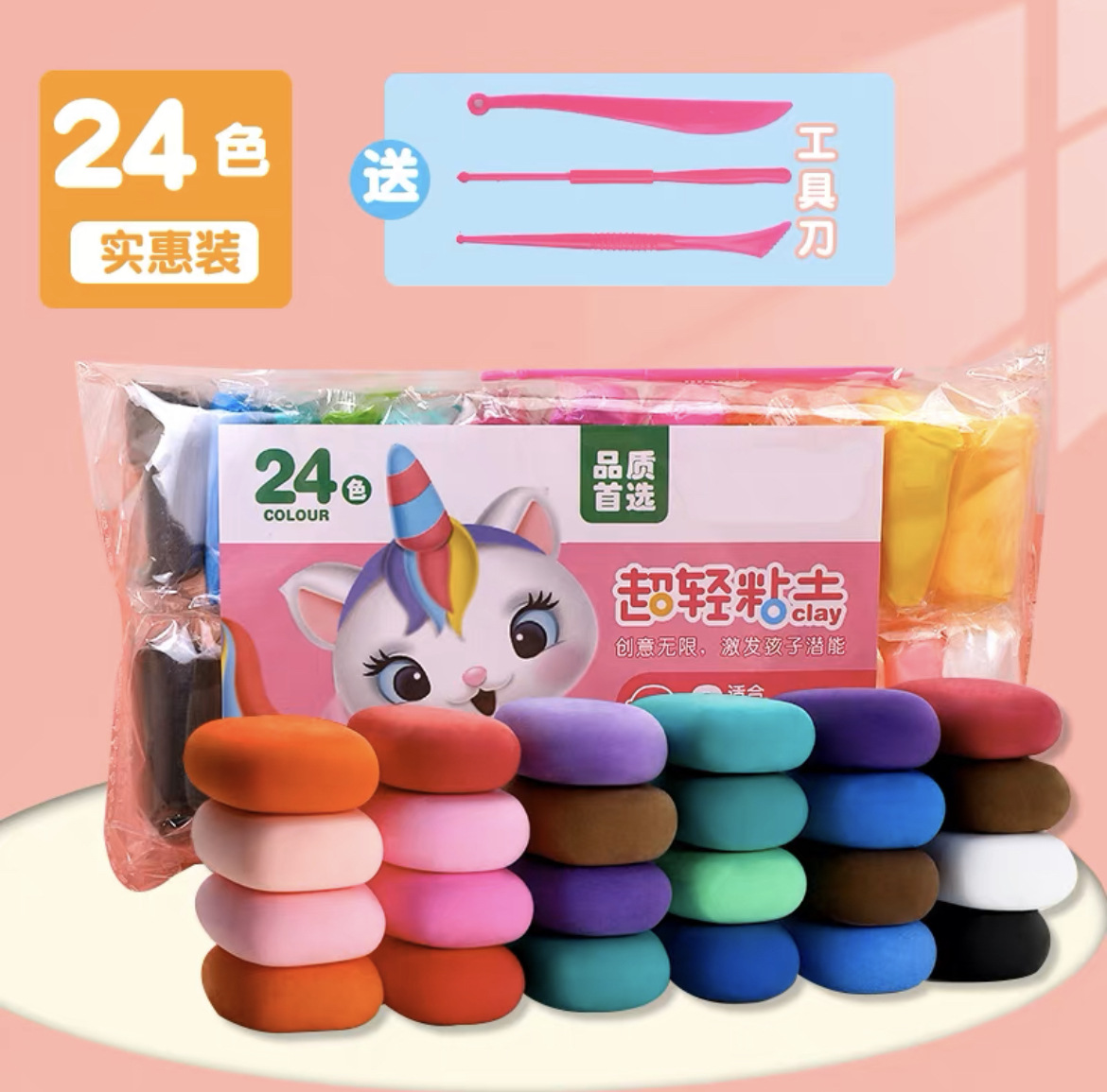 24 цветная Сверхлегкая глина в коробке (с формой для инструментов)