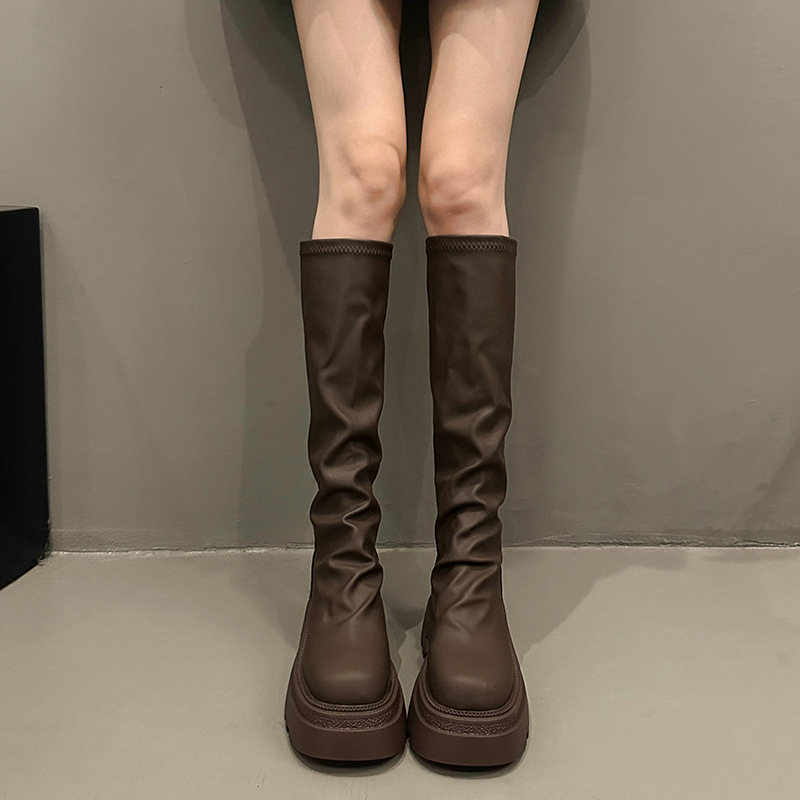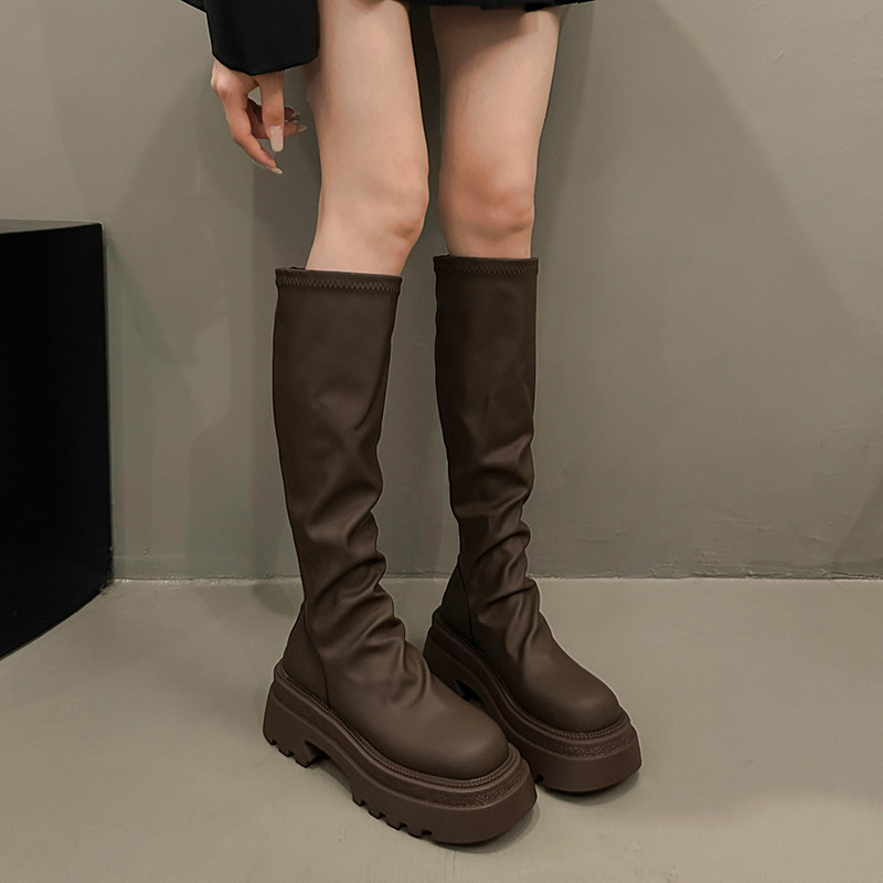 Главная страница > Женские ботинки Мартин для похудения на толстой подошве, увеличивающие рост, осень 2025, новые ботинки с круглым носком и молнией сзади, длинные сапоги выше колена для женщин