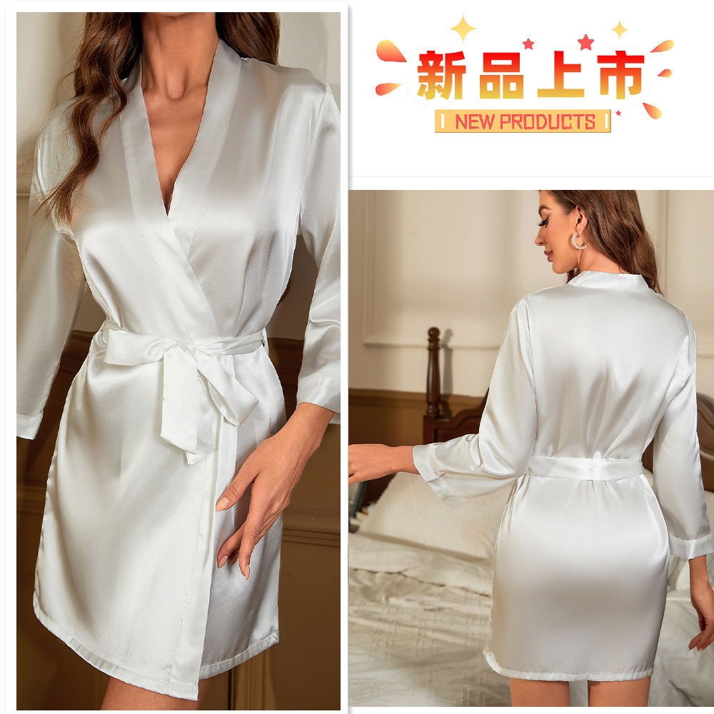 Главная страница > Сплошной цвет искусственный шелк средний рукав женский халат летний короткий кардиган с бахромой халат тонкий сексуальный пижама
