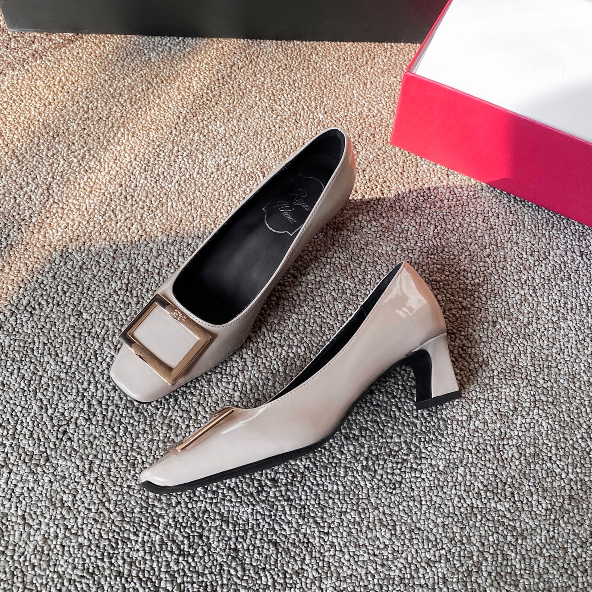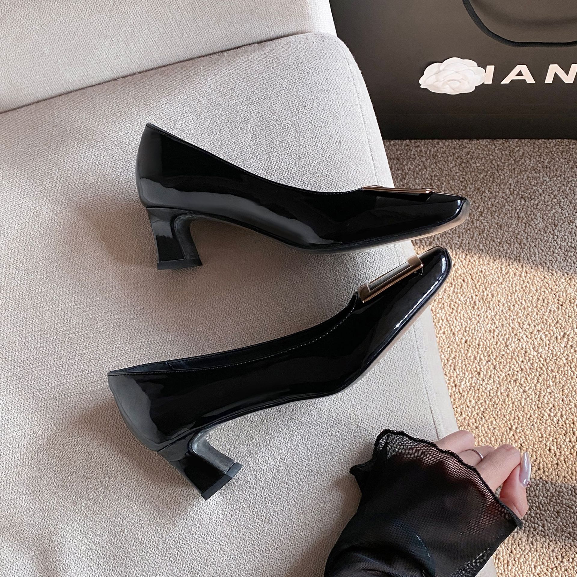Главная страница > Туфли из лакированной кожи с квадратной пряжкой, серые туфли на шпильке с неглубоким квадратным носком, свадебные туфли, элегантные женские туфли для офиса.