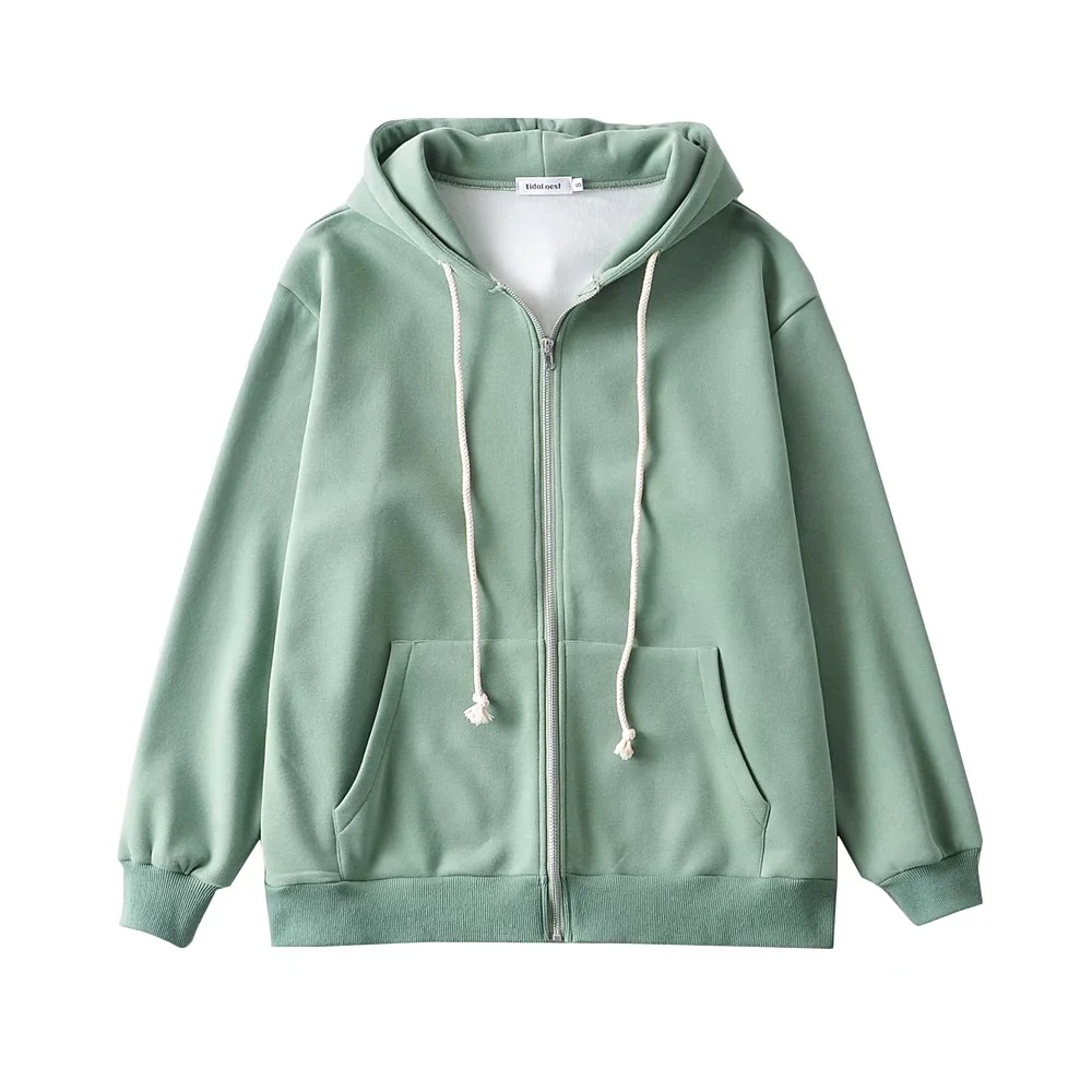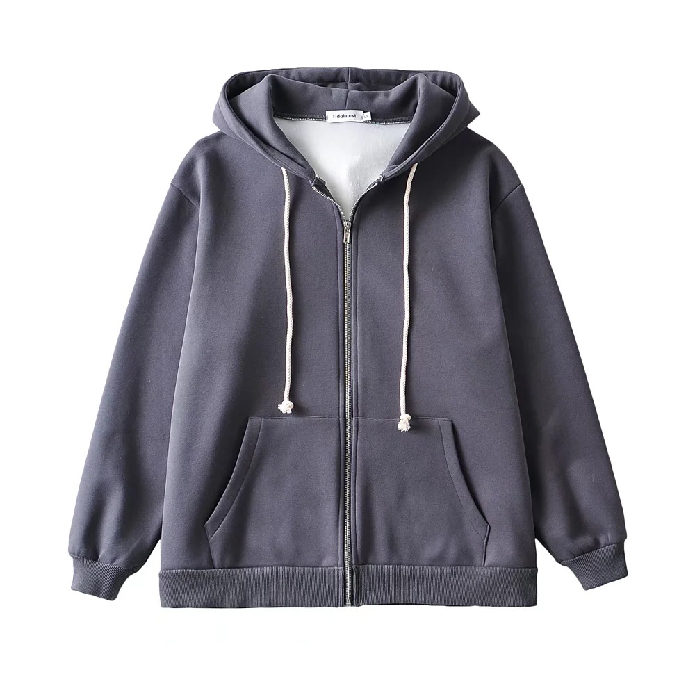 Главная страница > 2022 осенне-зимний Горячий Женский утолщенный свободный свитер с капюшоном на флисовой подкладке, женский кардиган на молнии средней длины с капюшоном