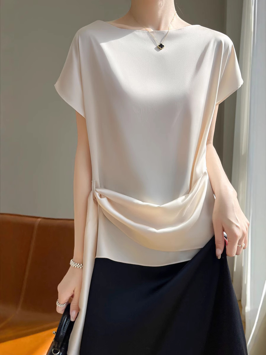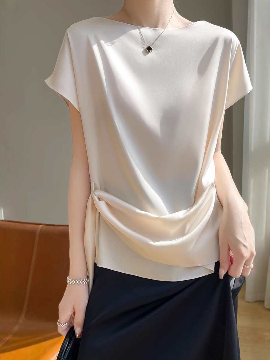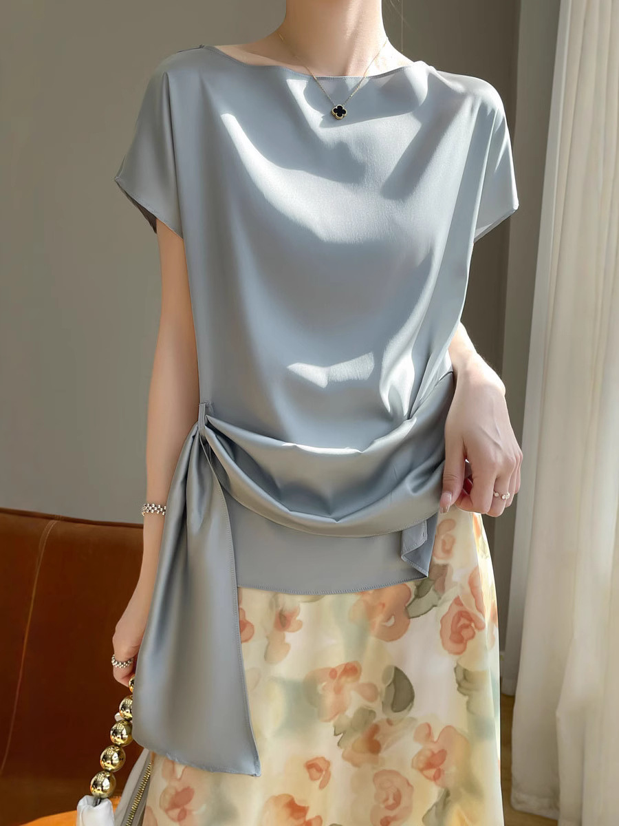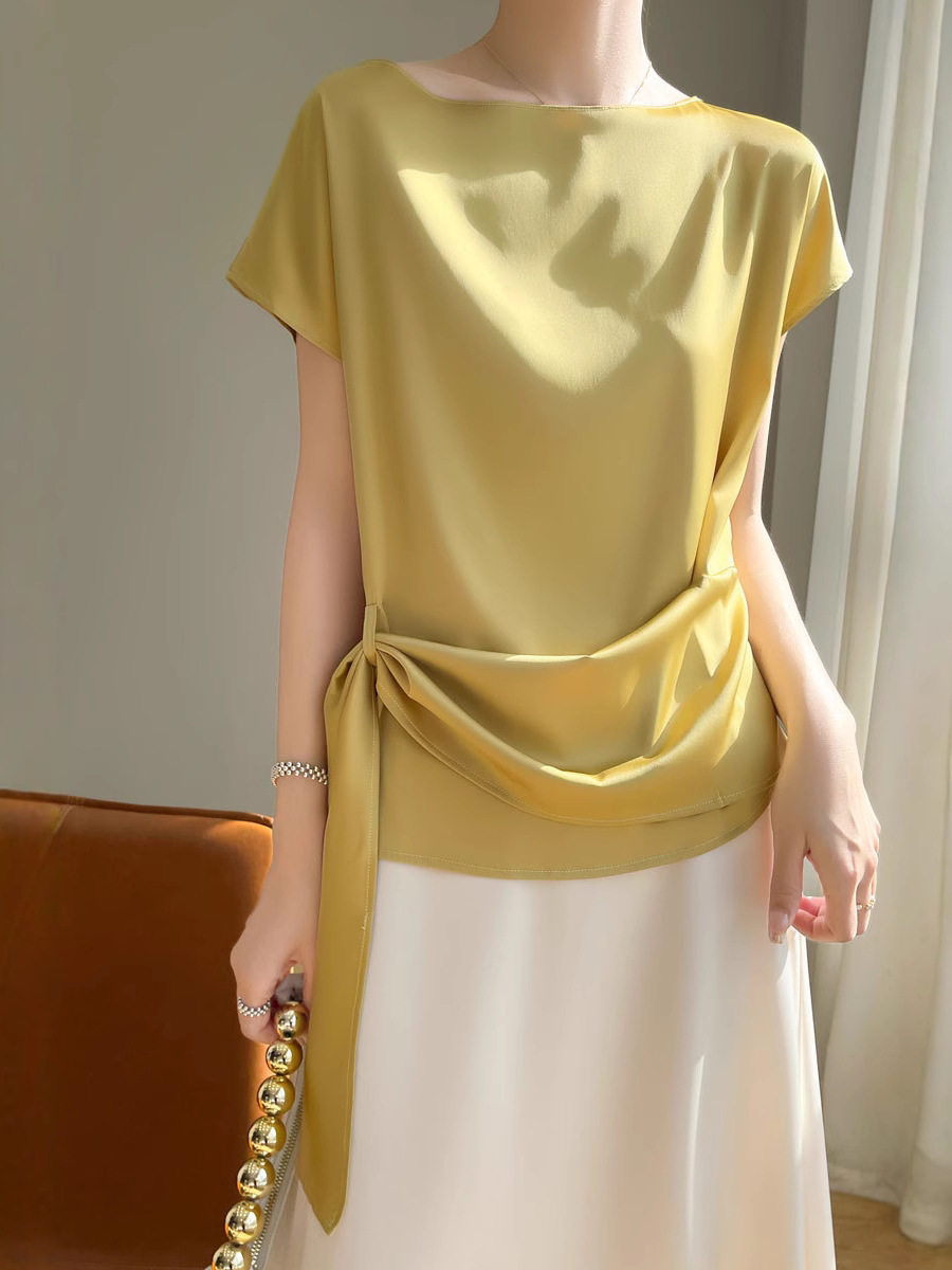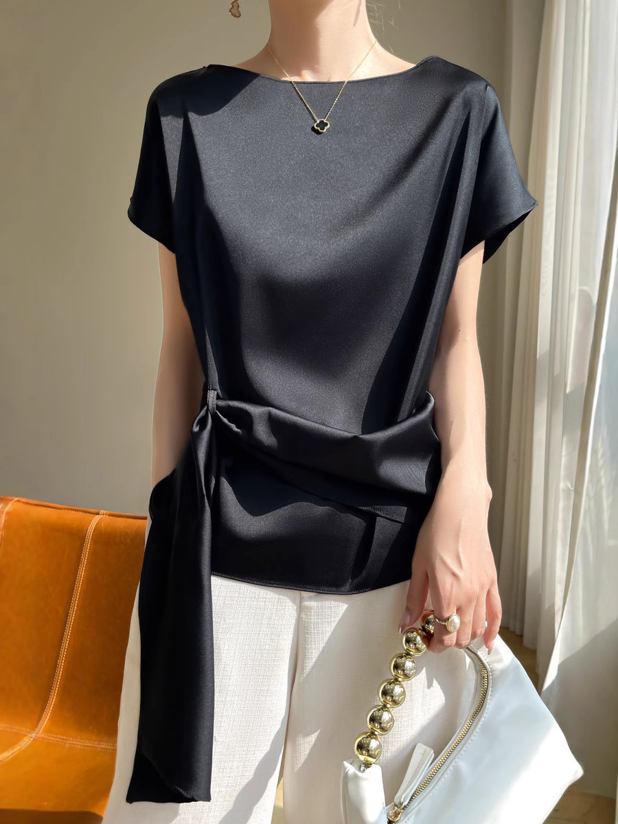 Главная страница > Ацетат ткань дизайн топы Женская футболка с короткими рукавами модная атласная рубашка новая футболка с ремешками 25 новых моделей