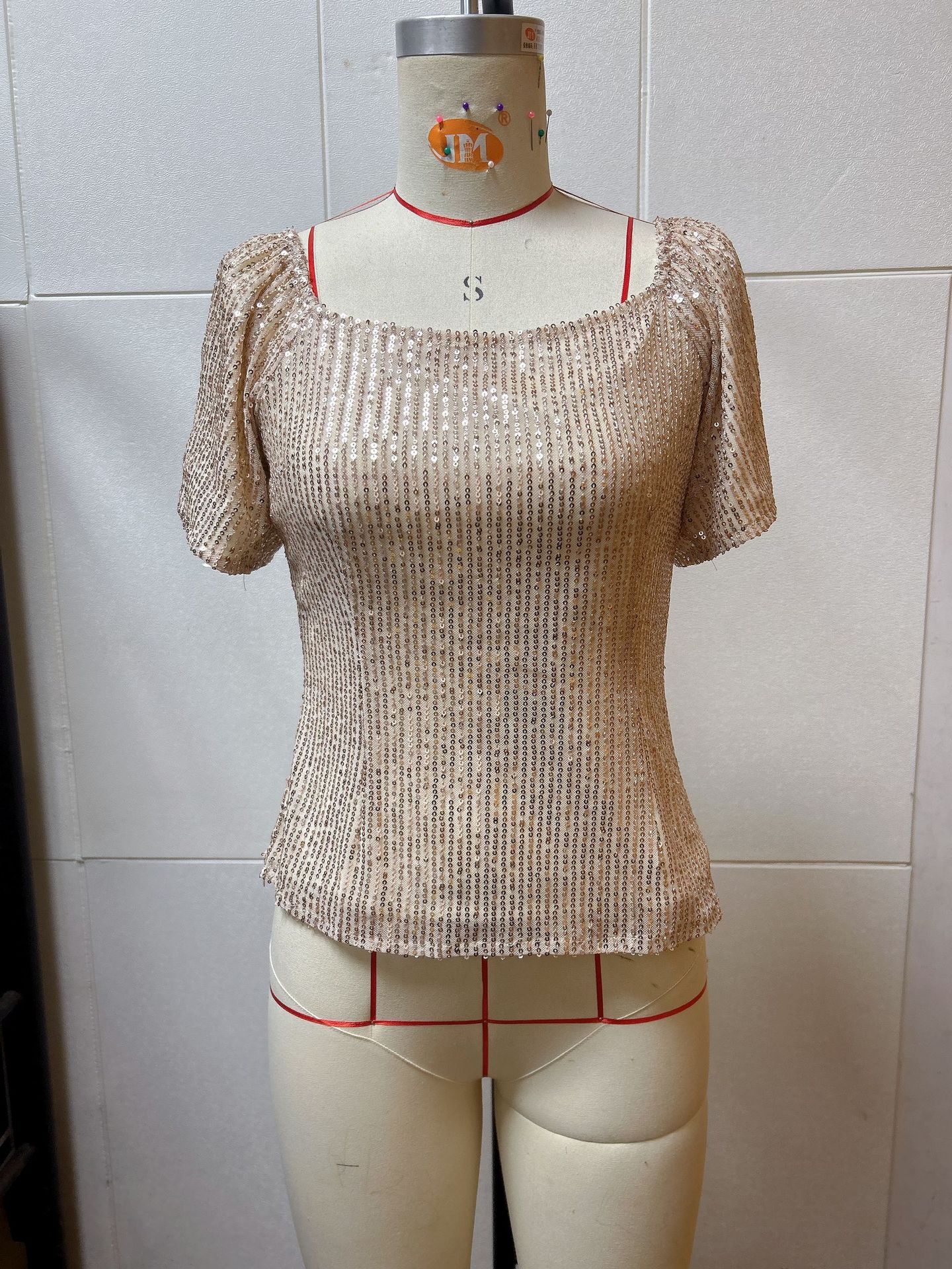 Главная страница > Женская универсальная блузка Amazon 2026 с квадратным вырезом, модная, с короткими рукавами-фонариками и пайетками, для трансграничной торговли в Европе и Америке