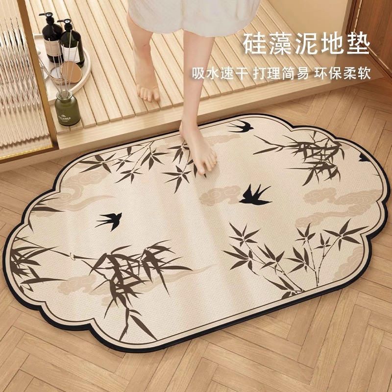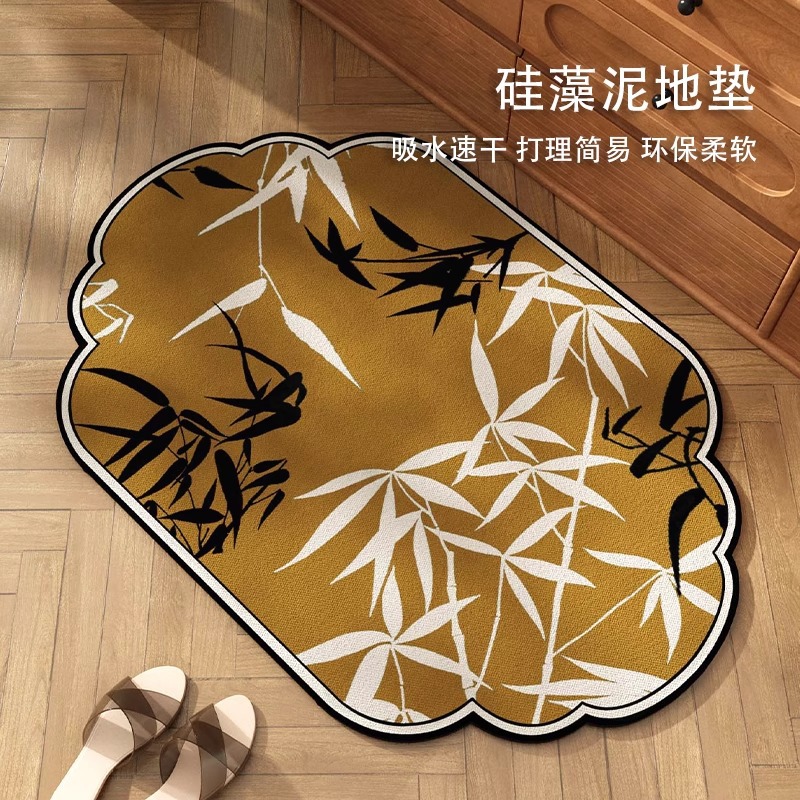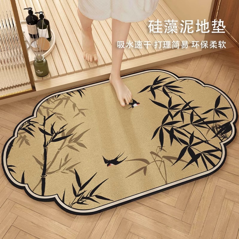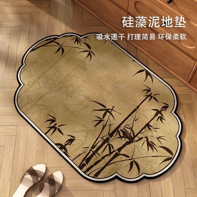 Коврик для ванной комнаты в китайском стиле, бамбуковый, новый китайский стиль, диатомовая грязь, водопоглощающий нескользящий коврик, коврик для входной двери в ванную комнату, коврик для ног