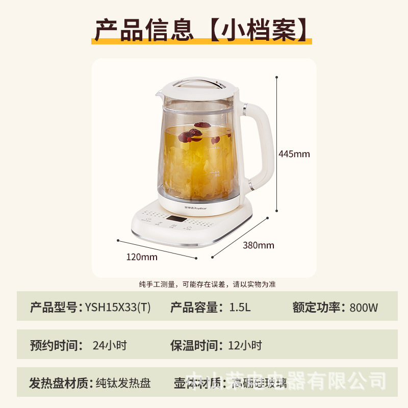Главная страница > Чайник для здоровья Royalstar, чистый титан, нагревательное шасси, двухслойный чайник, умная резервация, электрический чайник 1,5 л