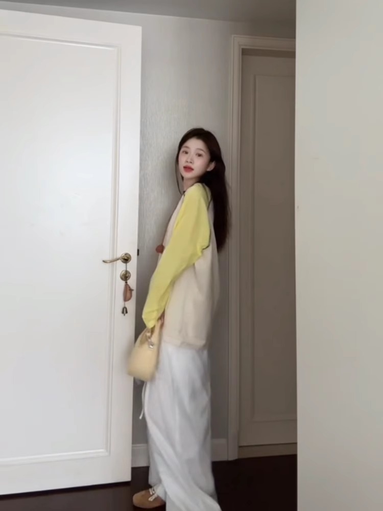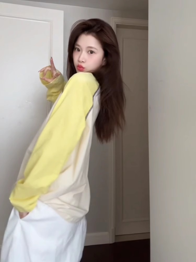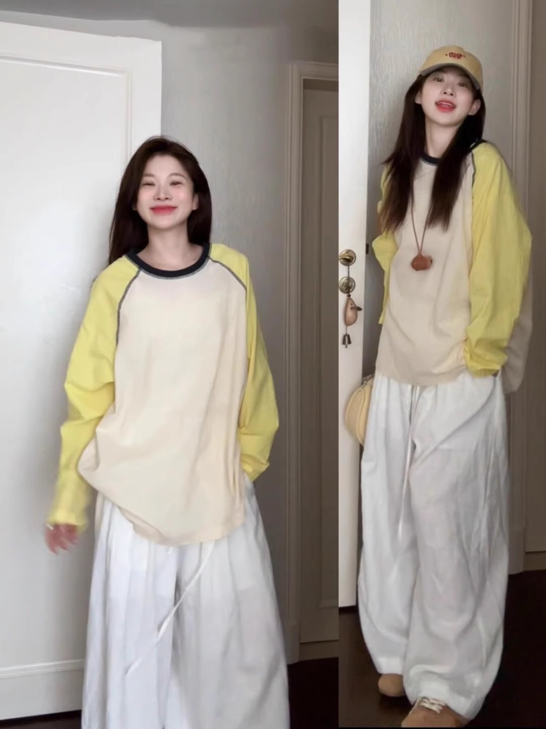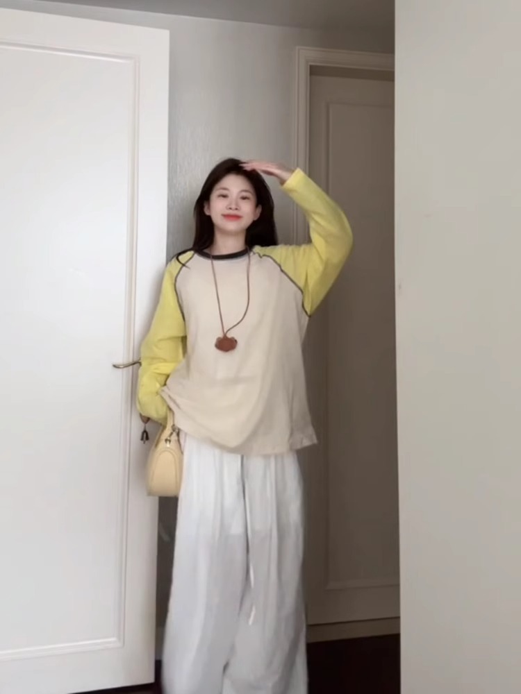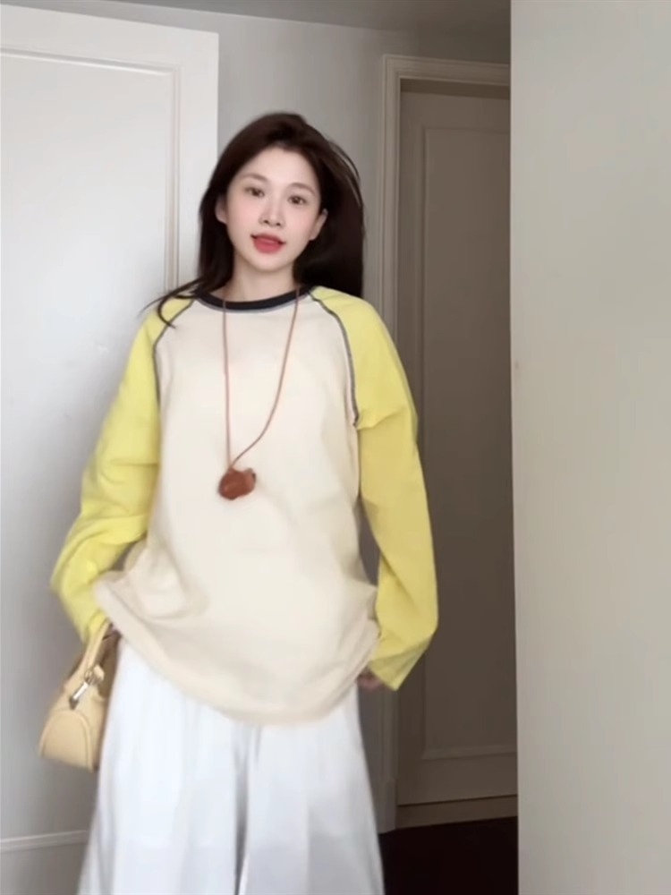 Главная страница > 2025 весна и лето новый цвет жемчуг с длинными рукавами футболка женская свободная дикая повседневная средняя длинная верхняя часть