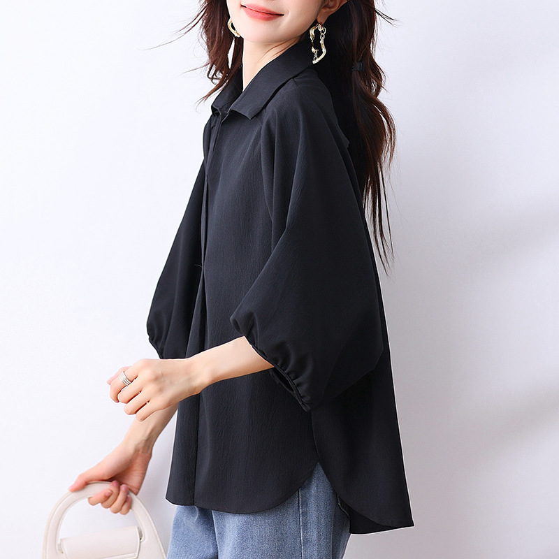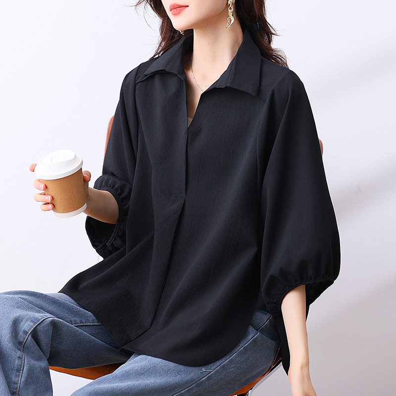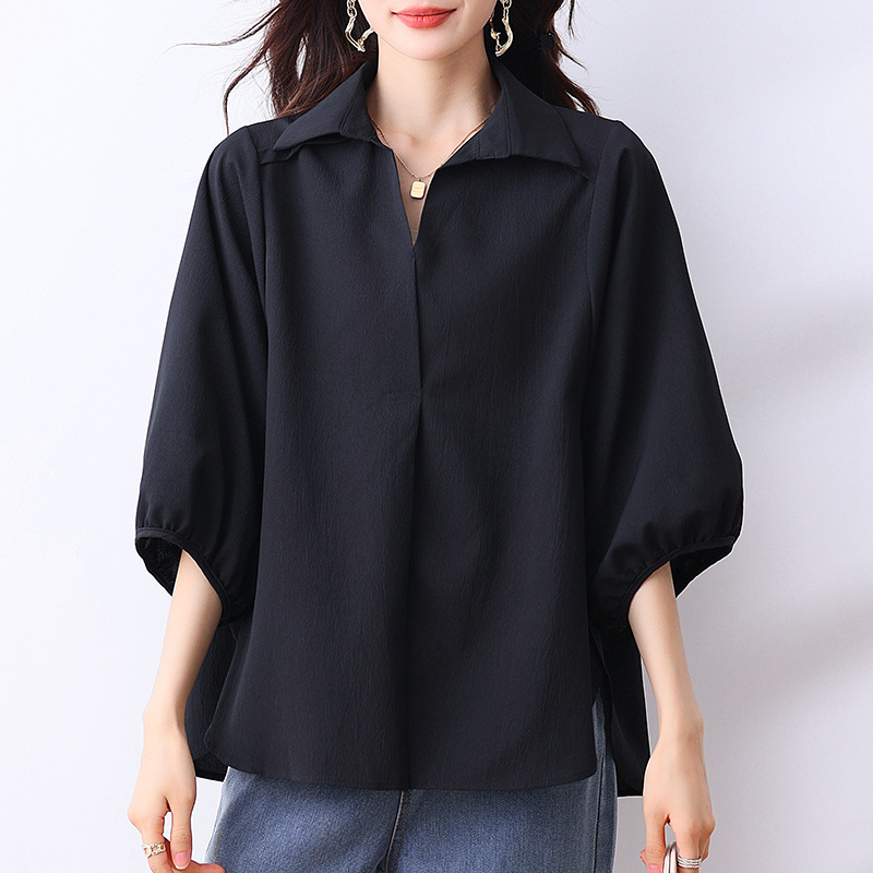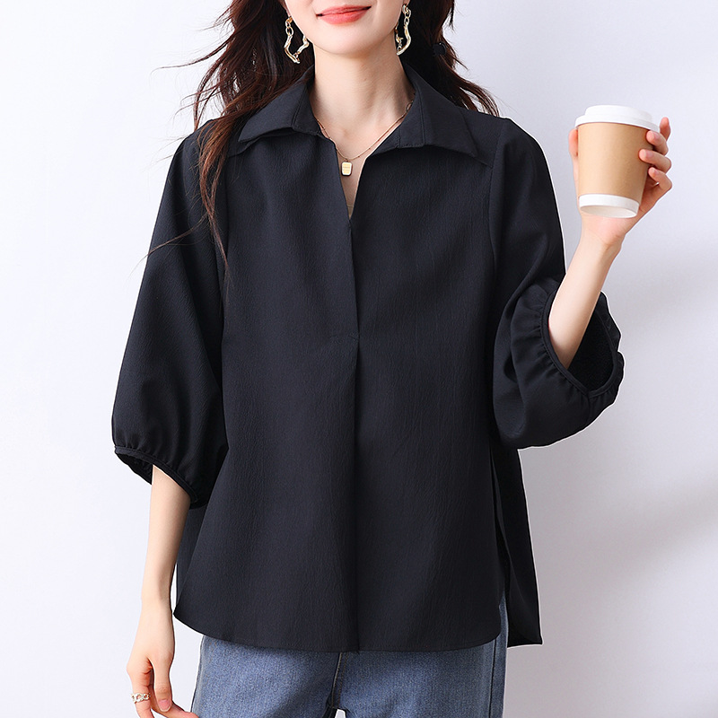 Главная страница > Рубашка с V-образным вырезом Hong Kong Wind с половиной рукава Женская весна 2025 года