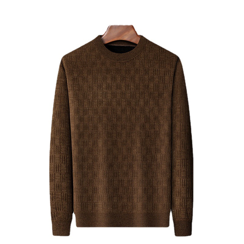 Главная страница > Утолщенный жаккардовый свитер из синели на флисовой подкладке, мужской новый Однотонный пуловер с круглым вырезом, вязаная Базовая рубашка 2022 года, Осень-зима