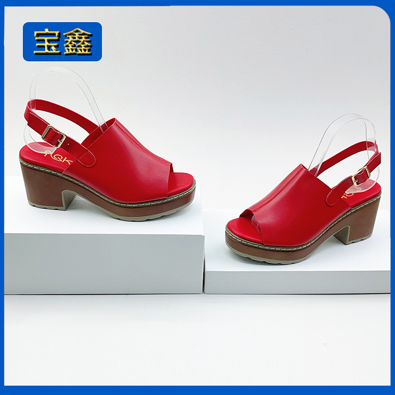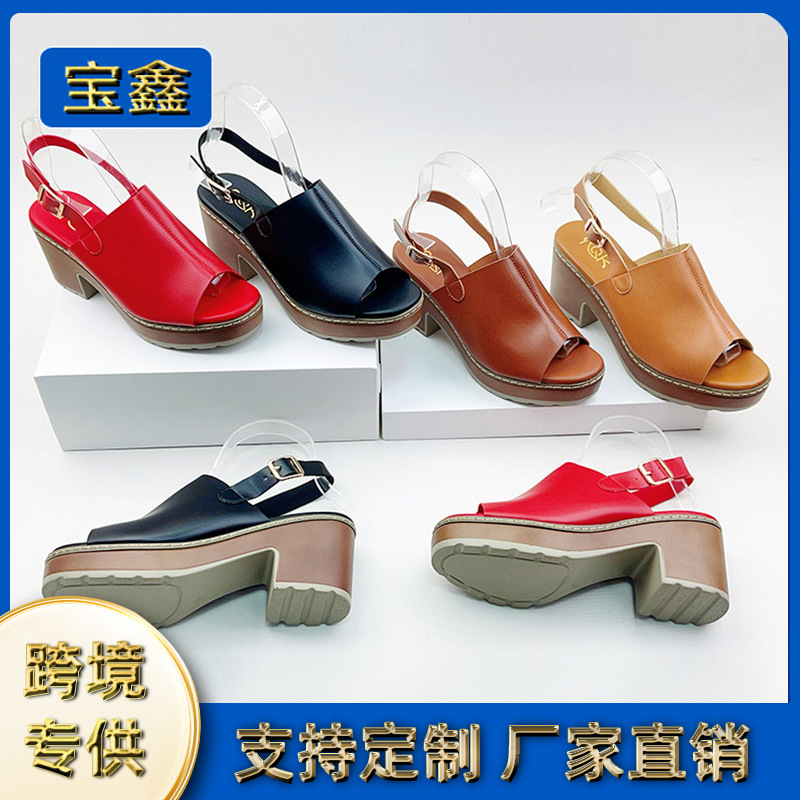 Главная страница > Модная обувь через границу, босоножки на высоком каблуке с рыбьим ртом, однотонные, простые, повседневные, универсальные, европейские и американские женские туфли на толстом каблуке с пряжкой