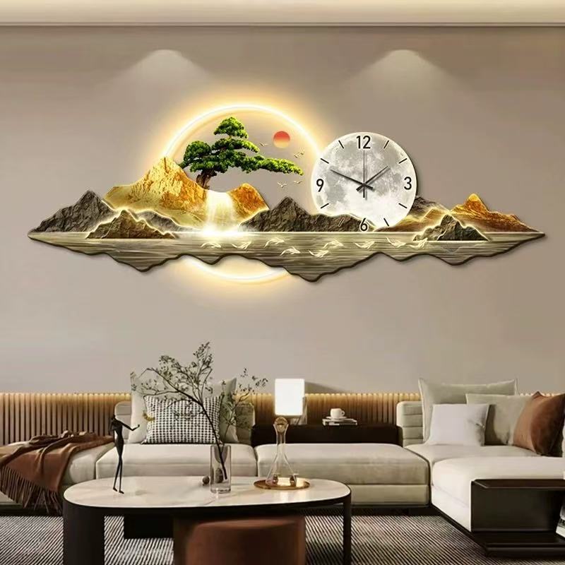 Акрил LED с лампой Часы и гостиная декоративная живопись Современная пейзажная живопись фон настенная живопись