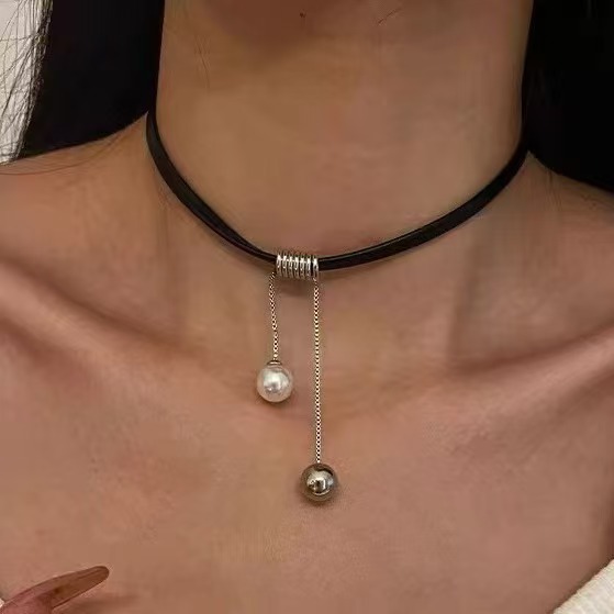 Черное кожаное ожерелье из веревки X3622
