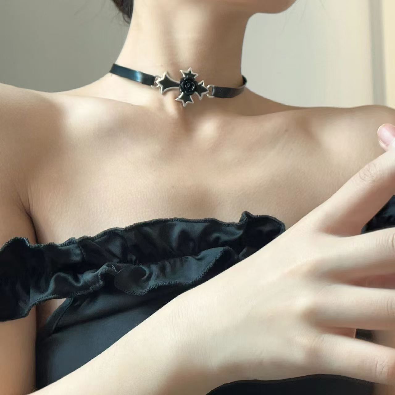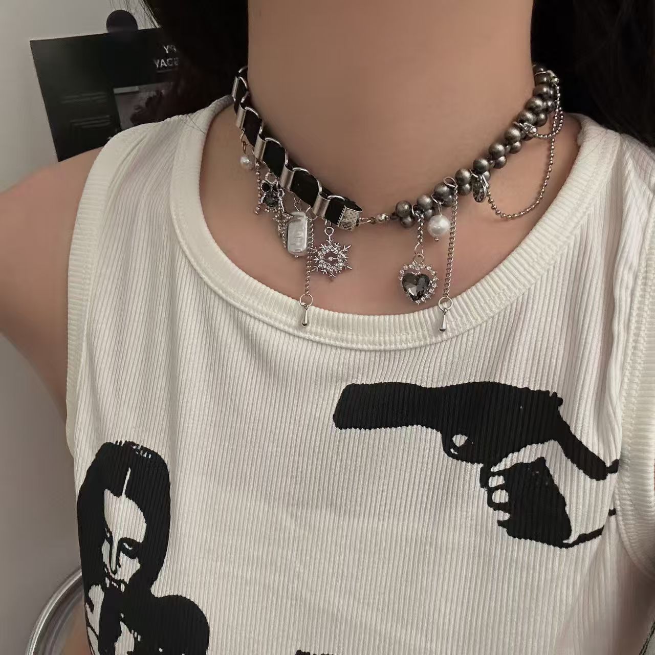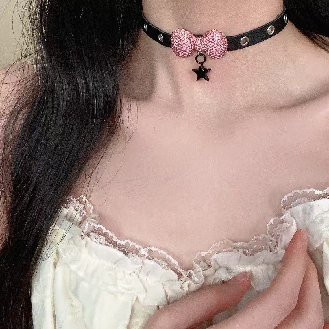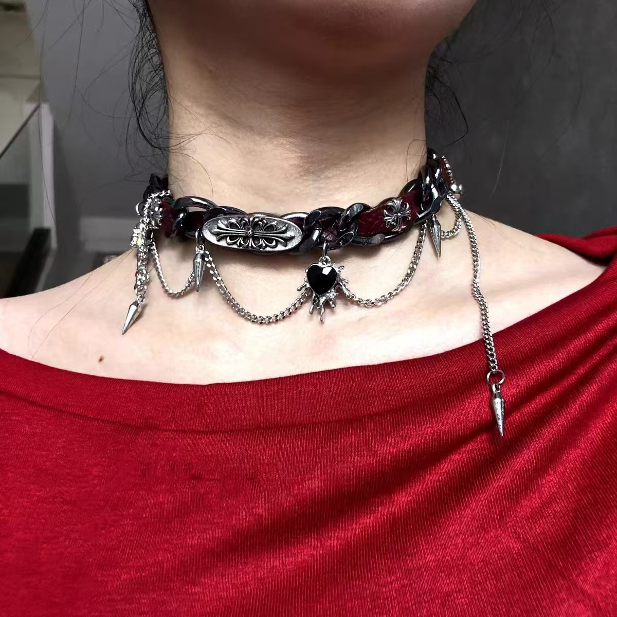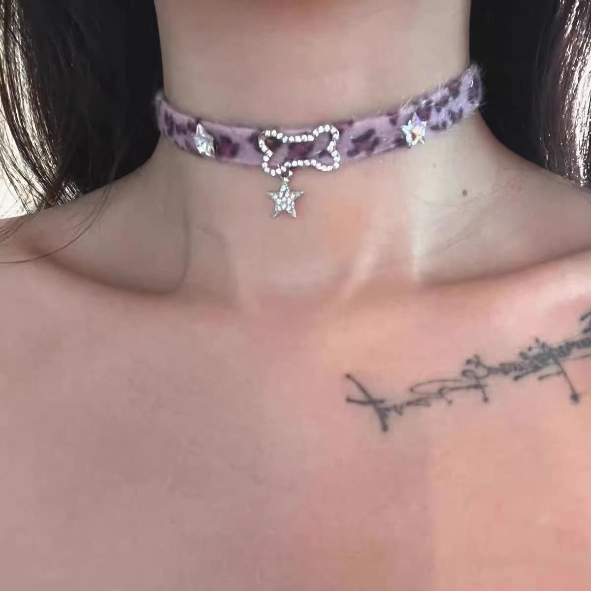 Главная страница > Y2K Spice Girl кости звезды крест кора ошейник ожерелье нишевые культуры панк чокер цепочка ключицы