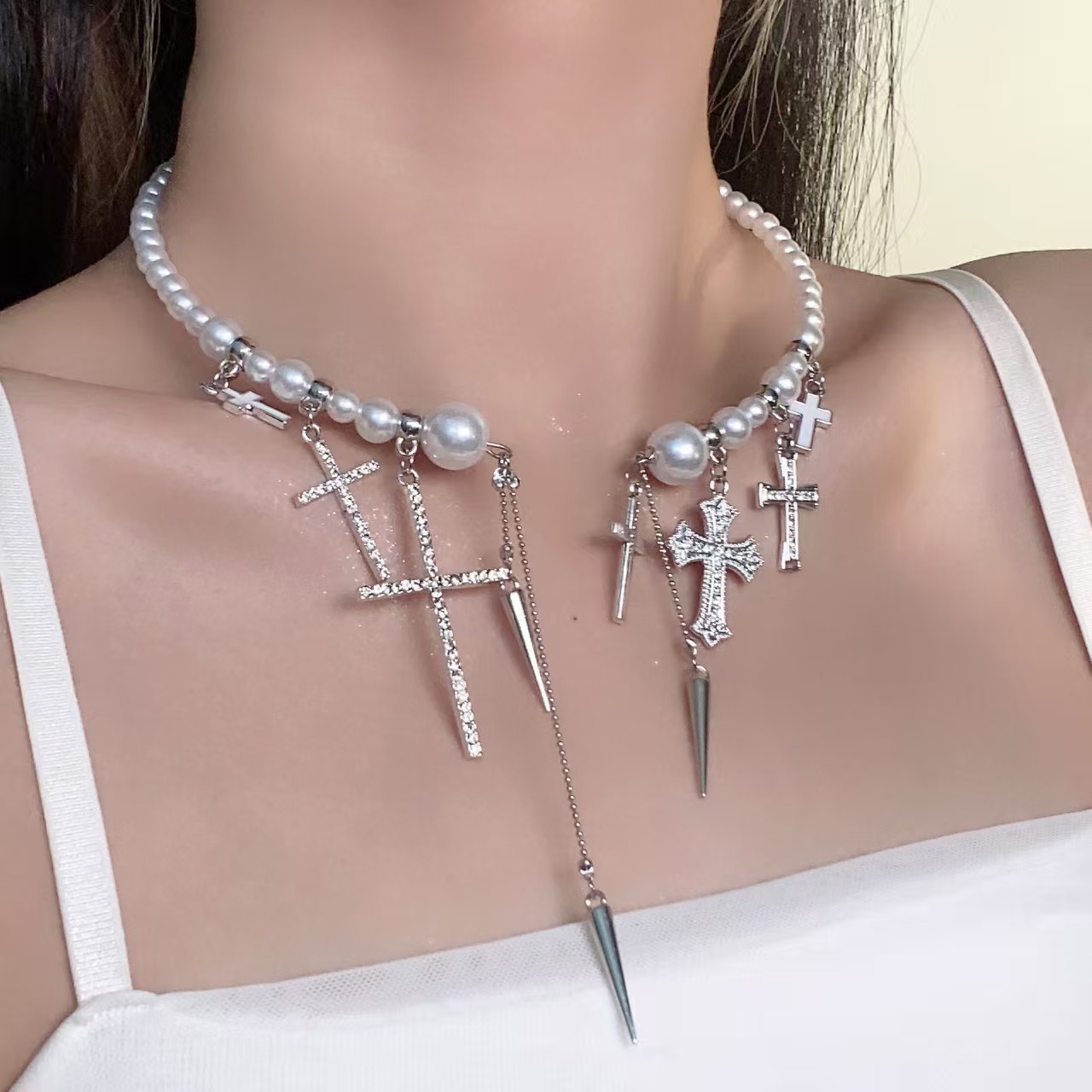 Жемчужное крестиковое ожерелье-X4210