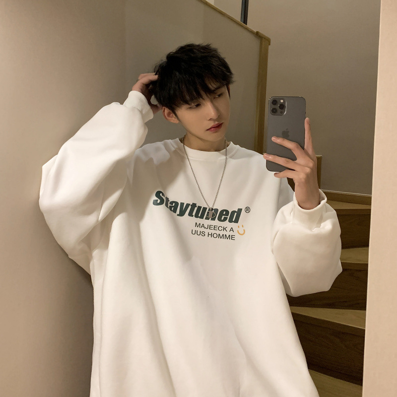 Главная страница > Осенне-зимний свитер на флисовой подкладке, модная мужская Свободная футболка с круглым вырезом, Базовая рубашка, Топ с длинным рукавом для полных пар