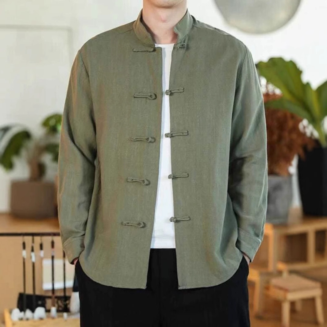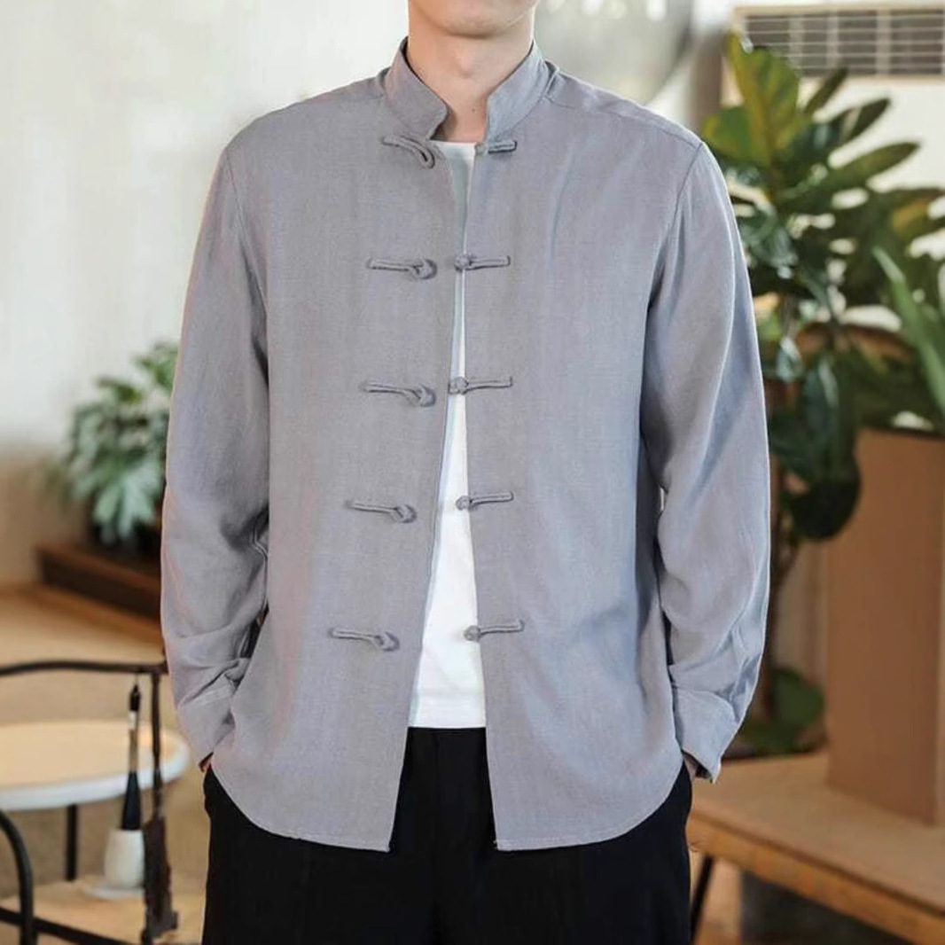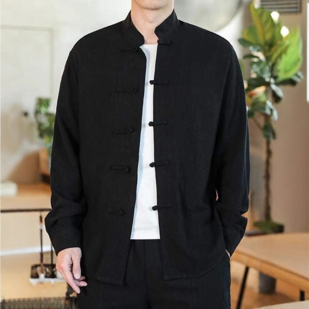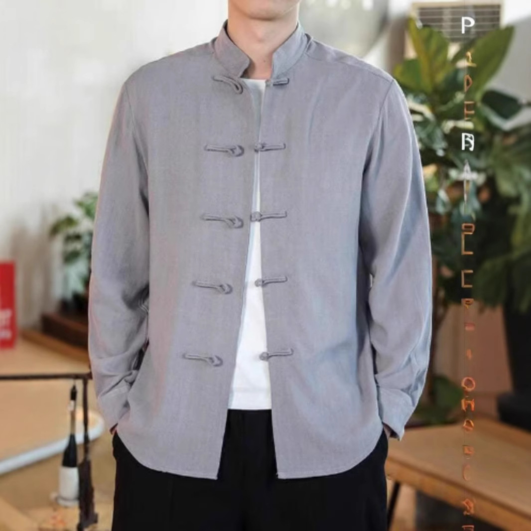 Главная страница > 2024 Китайский стиль осень с пряжкой Tang рубашка ретро повседневный большой размер мужской костюм с длинными рукавами