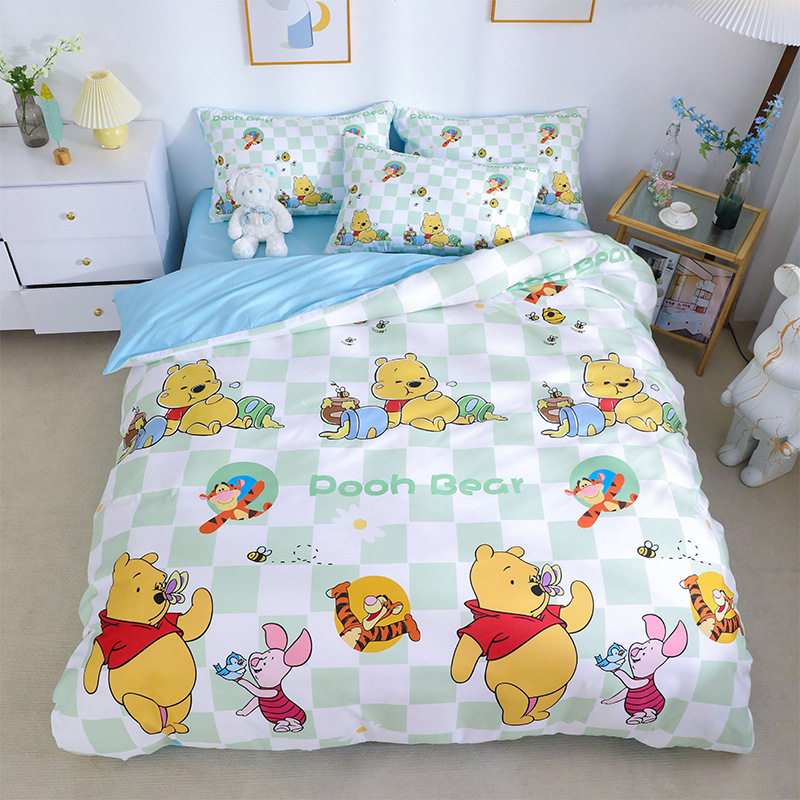 Главная страница > Винни Медведь хлопковый мультяшный постель с принтом набор из четырех частей Детский медведь постельное белье комплект общежития