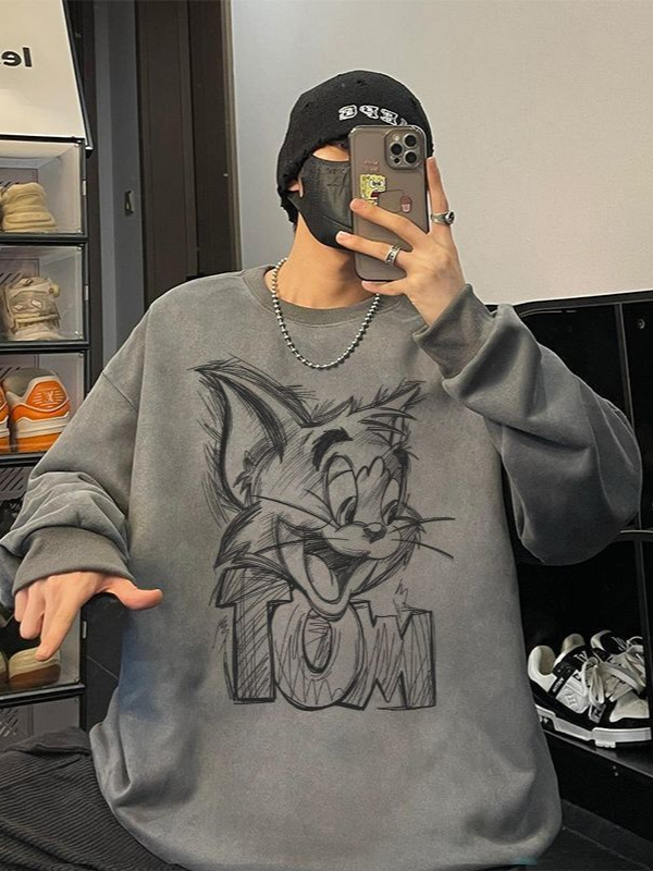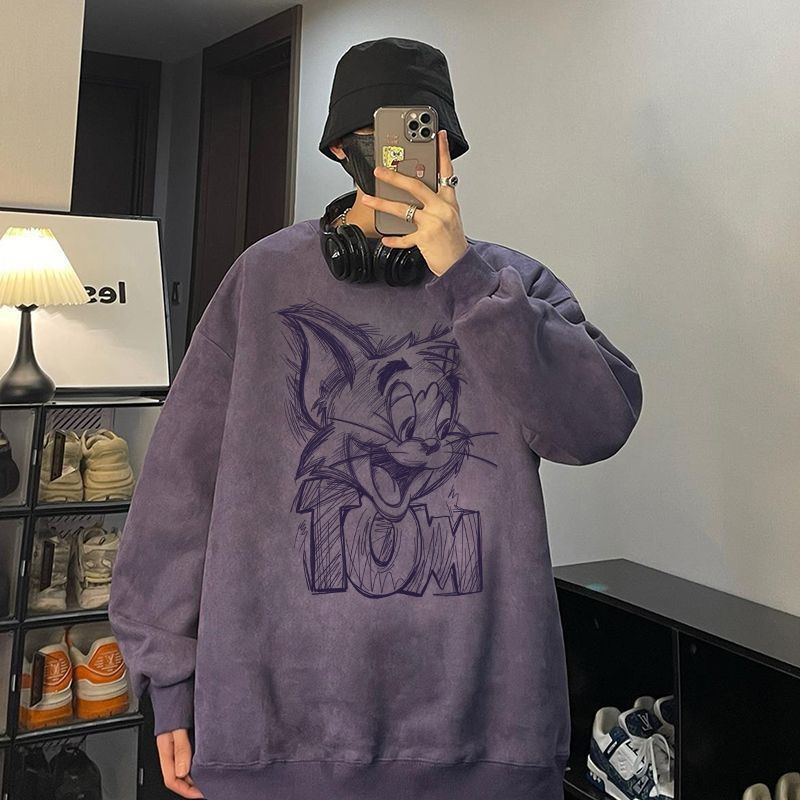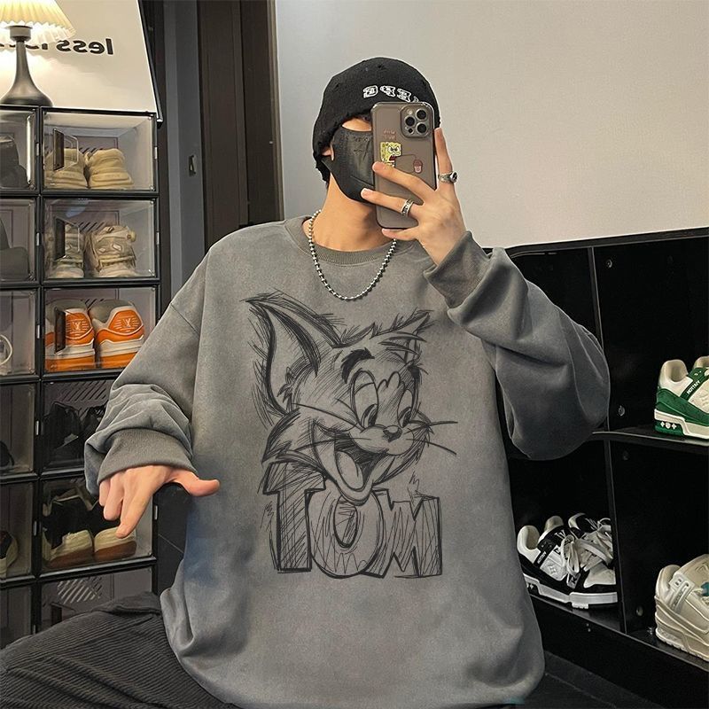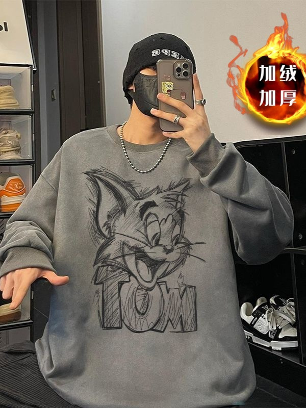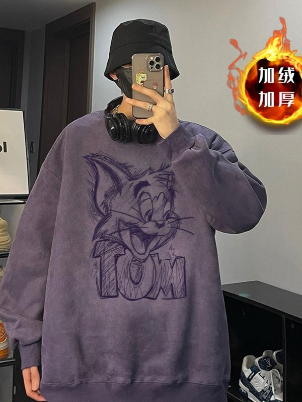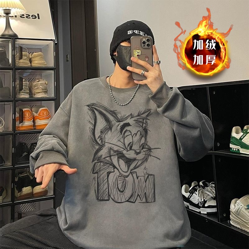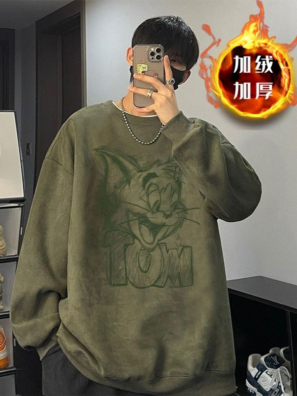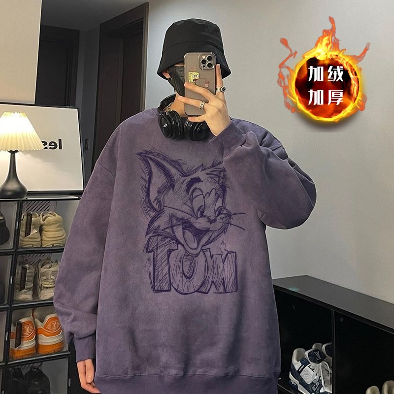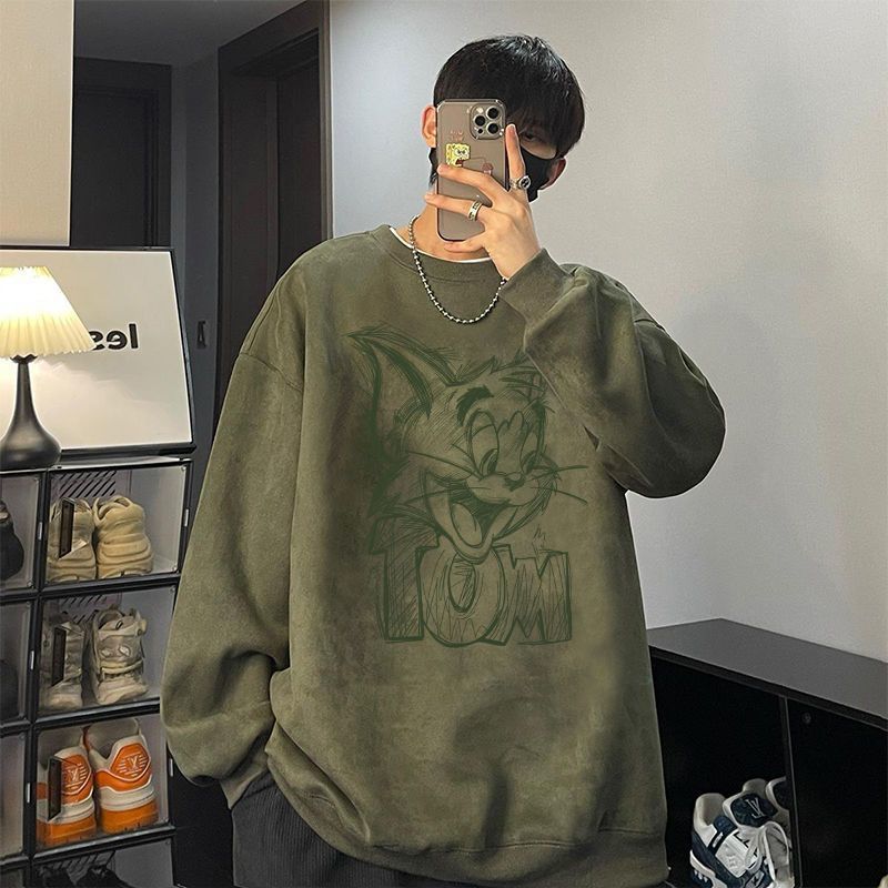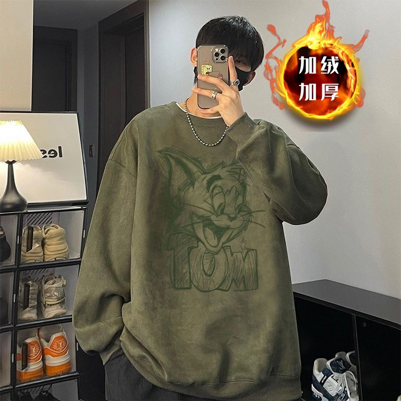 Главная страница > Жареная улица Ретро без шляпы с круглым воротником свитер мужская имитация замши корейская версия осень и зима свободная японская 2024 американский