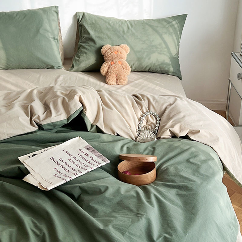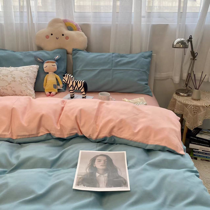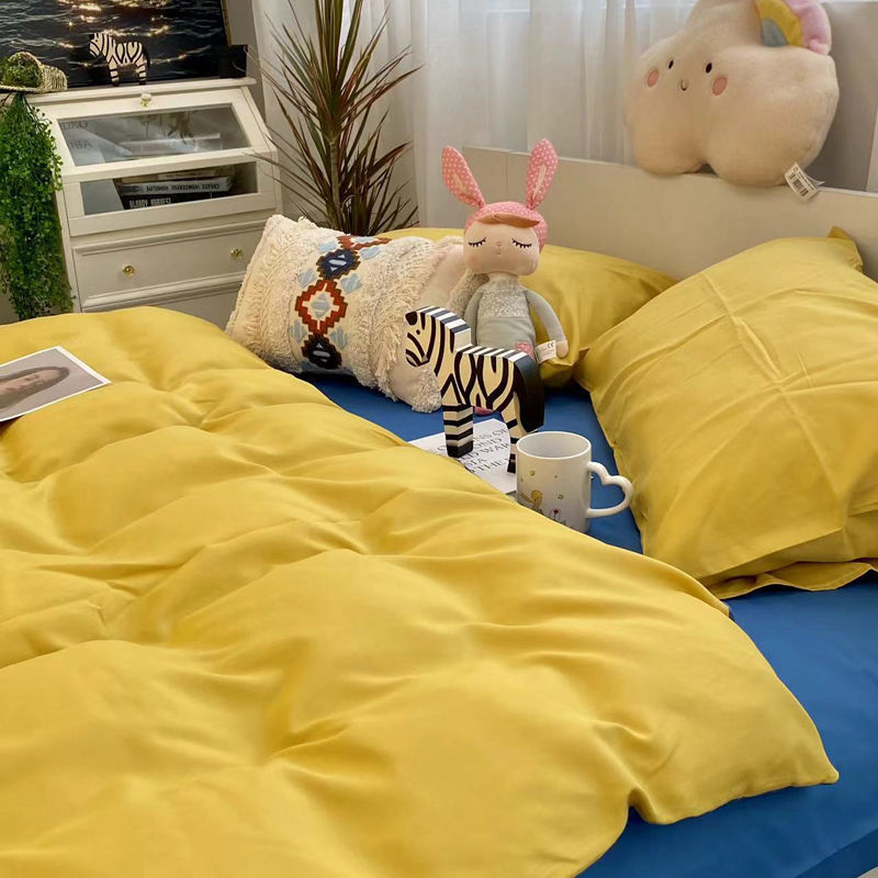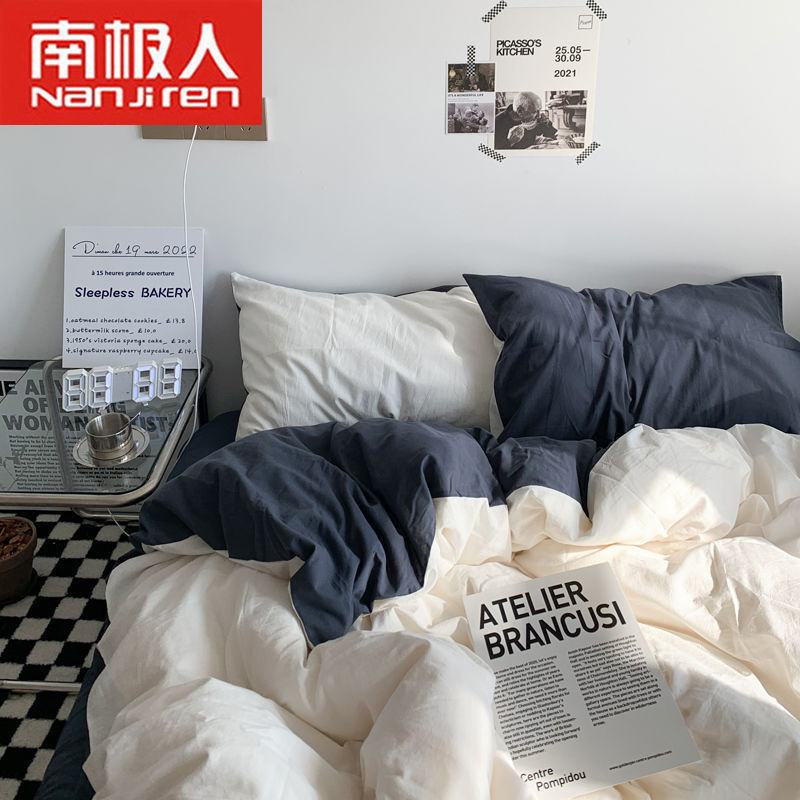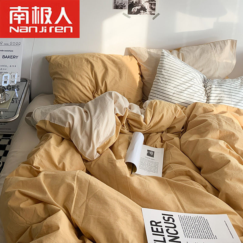 Главная страница > Nanjiren простой японский стиль из четырех частей из мытого хлопка, однотонный цвет, подходящий по цвету, постельное белье, пододеяльник, студенческое общежитие, одиночный комплект из трех предметов