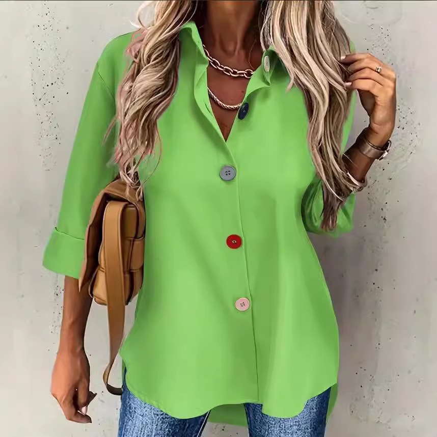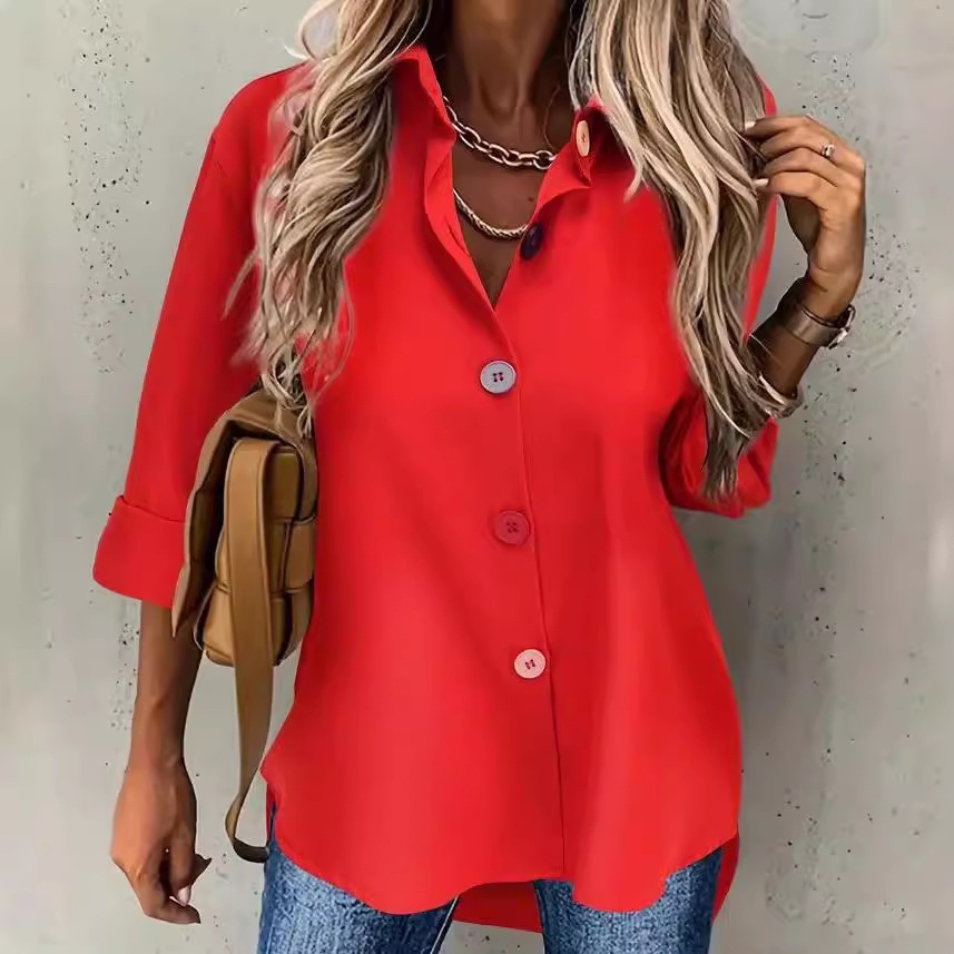Главная страница > Трансграничная европейская и американская женская одежда 2025 Amazon независимая станция популярные повседневные женские однотонные рубашки с длинными рукавами на пуговицах