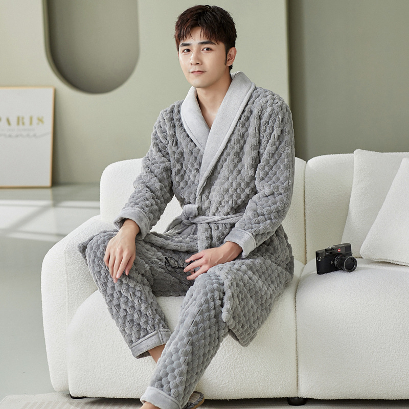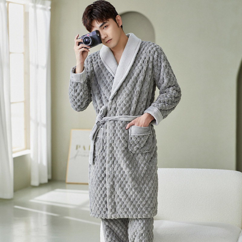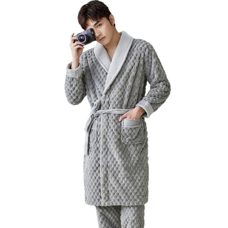 Главная страница > Мужские пижамы из кораллового флиса, осенне-зимние халаты, комплект пижам средней длины с вырезами, домашняя одежда из фланели, теплая и мягкая