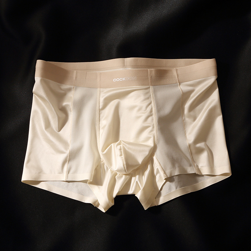 Главная страница > Атласное мужское нижнее белье из ледяного шелка, летние бесшовные антибактериальные сетчатые дышащие шорты-боксеры для мальчиков с кондиционером